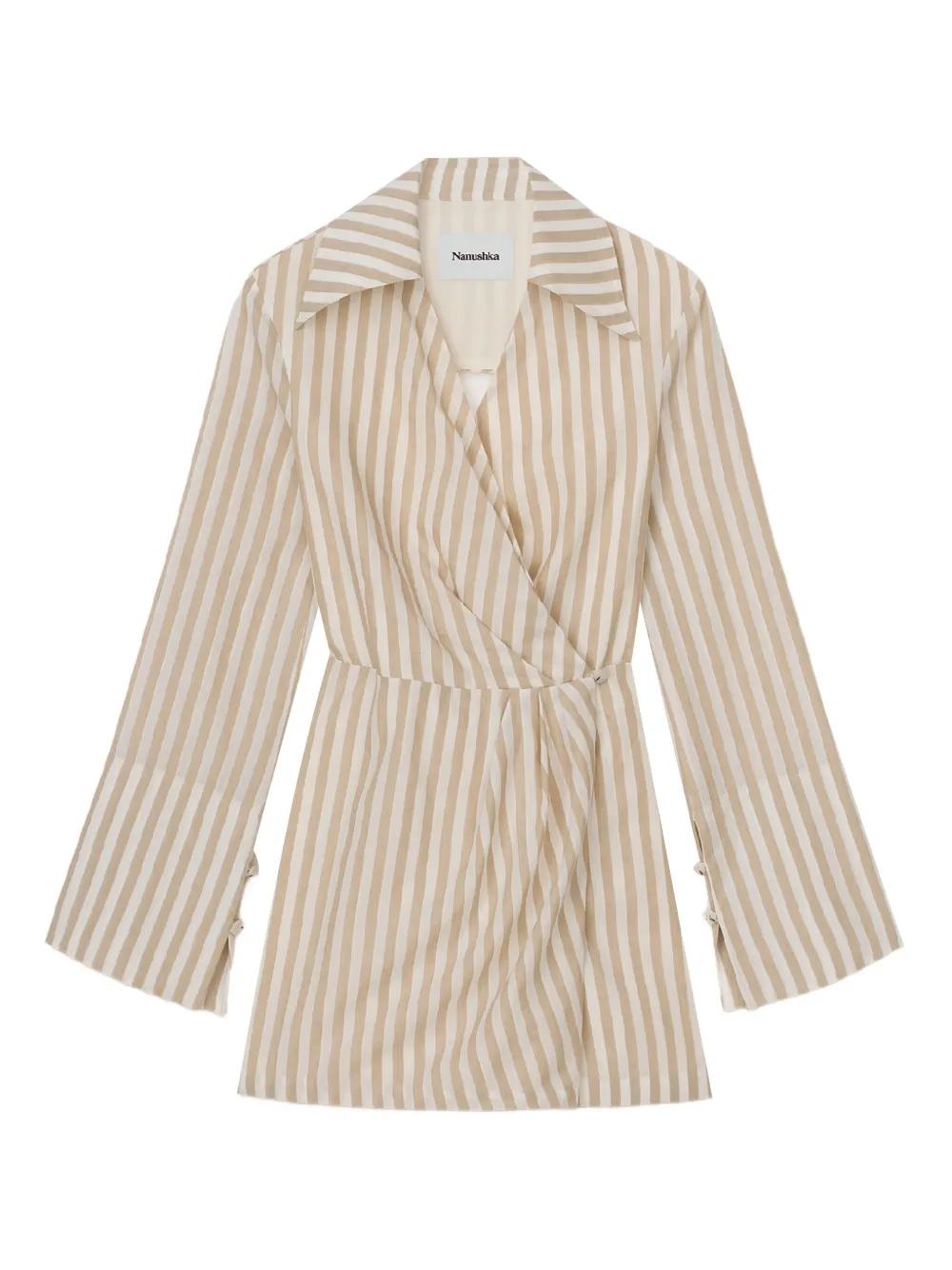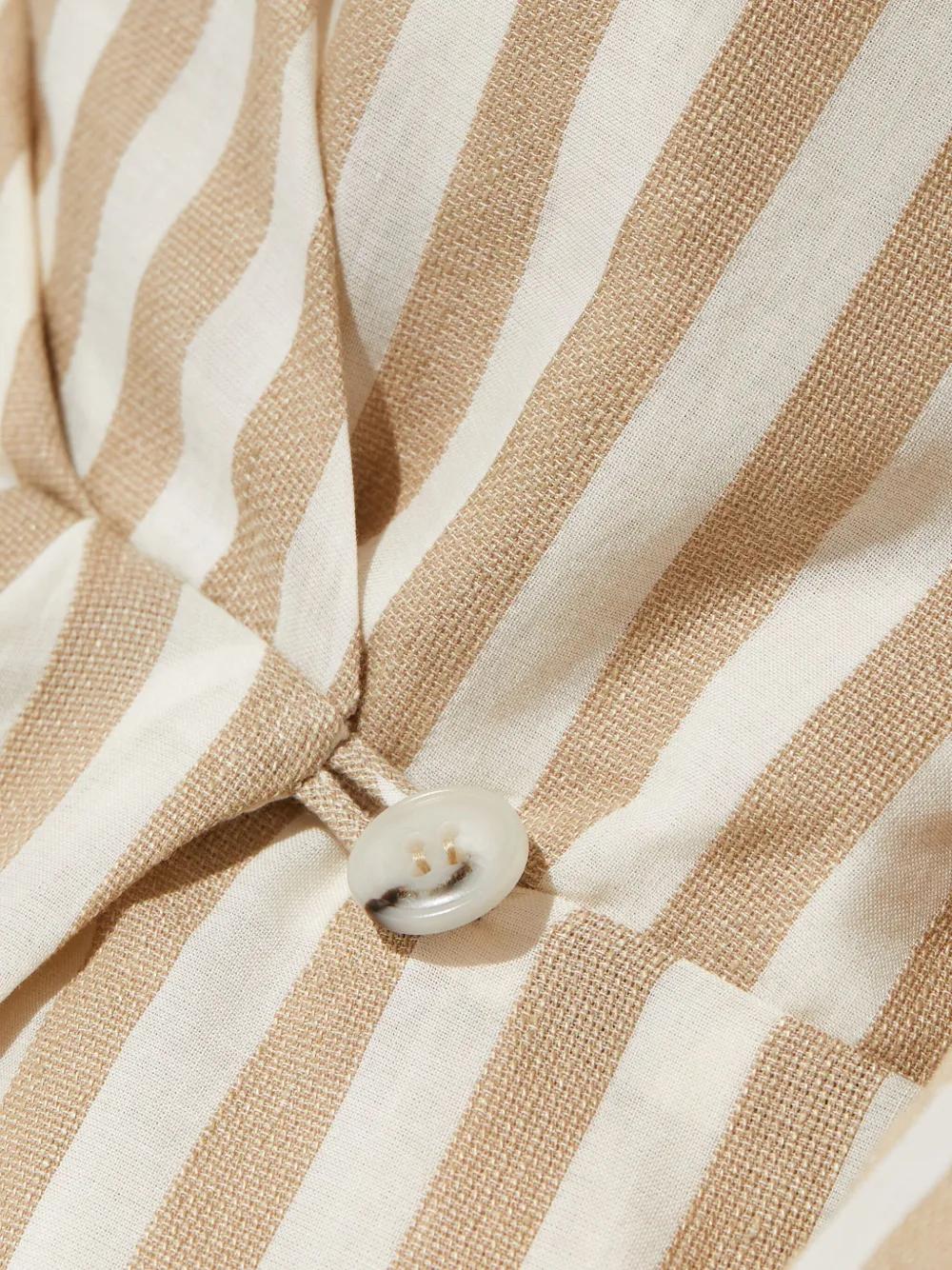 beige striped pattern buttoned cuffs back cut-out wrap design