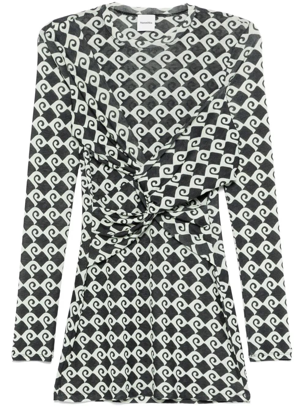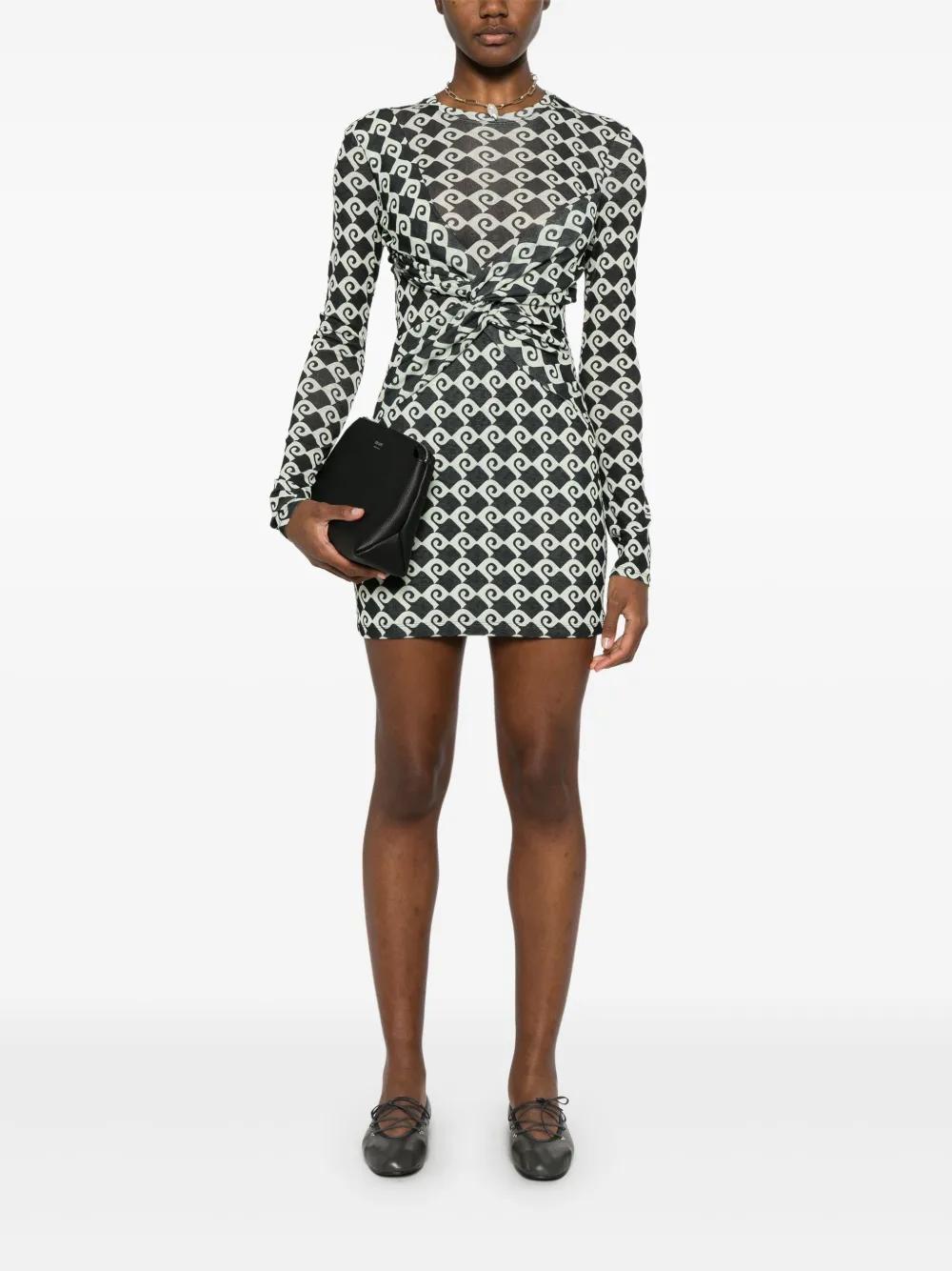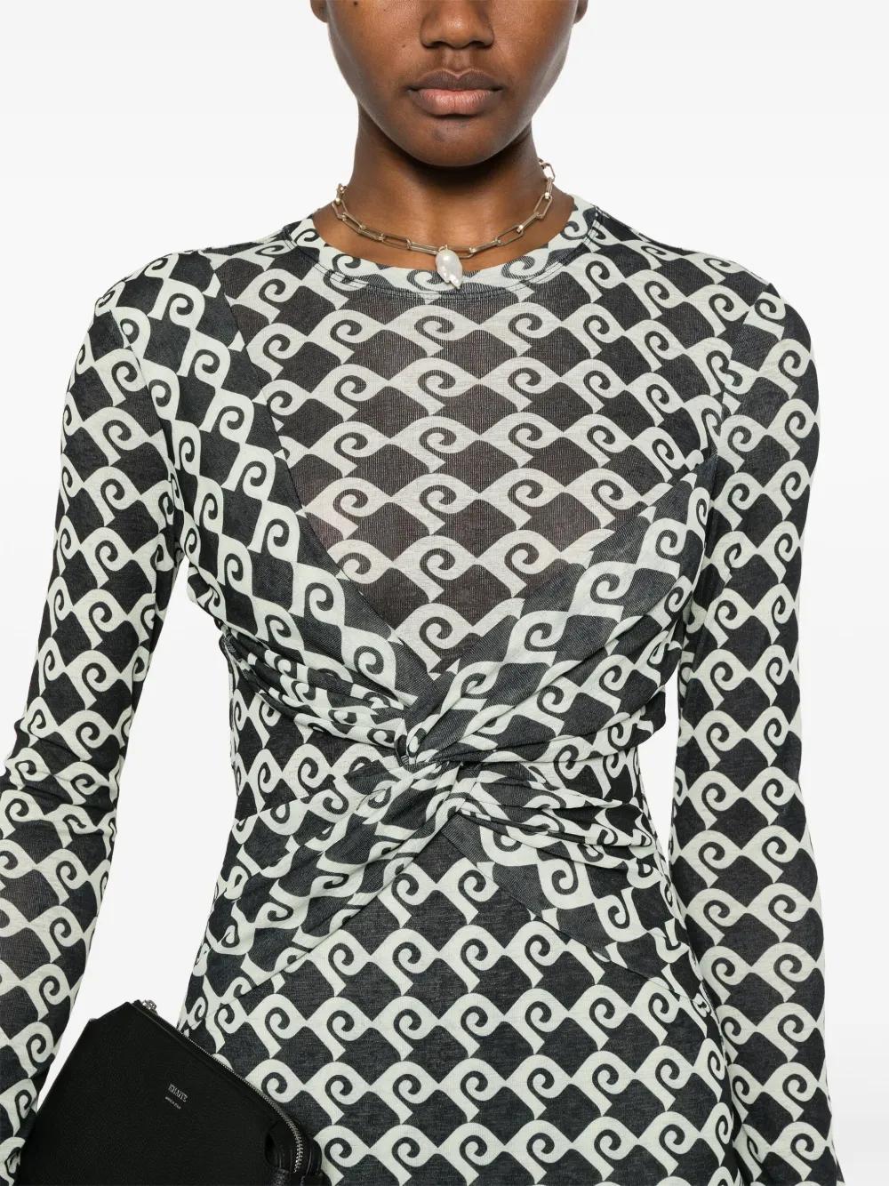 dark green geometric-pattern print twist detailing
