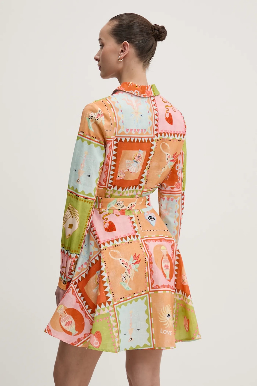 Never Fully Dressed sukienka z domieszką lnu kolor pomarańczowy mini rozkloszowana NFDDR1781