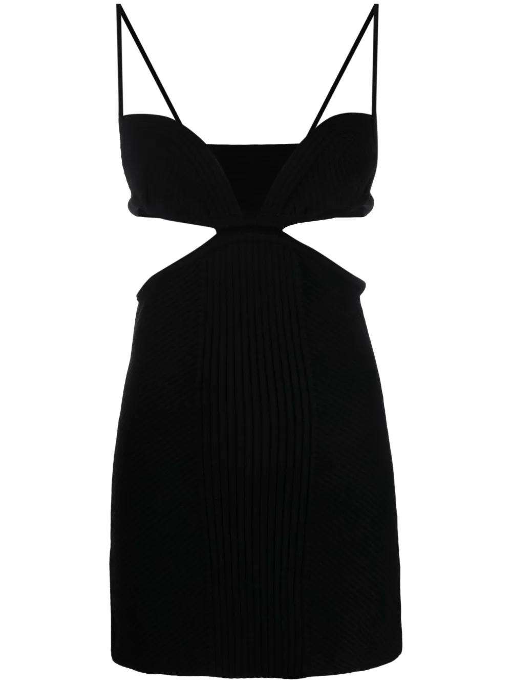 black ribbed knit cut-out detailing thin shoulder straps thigh-length