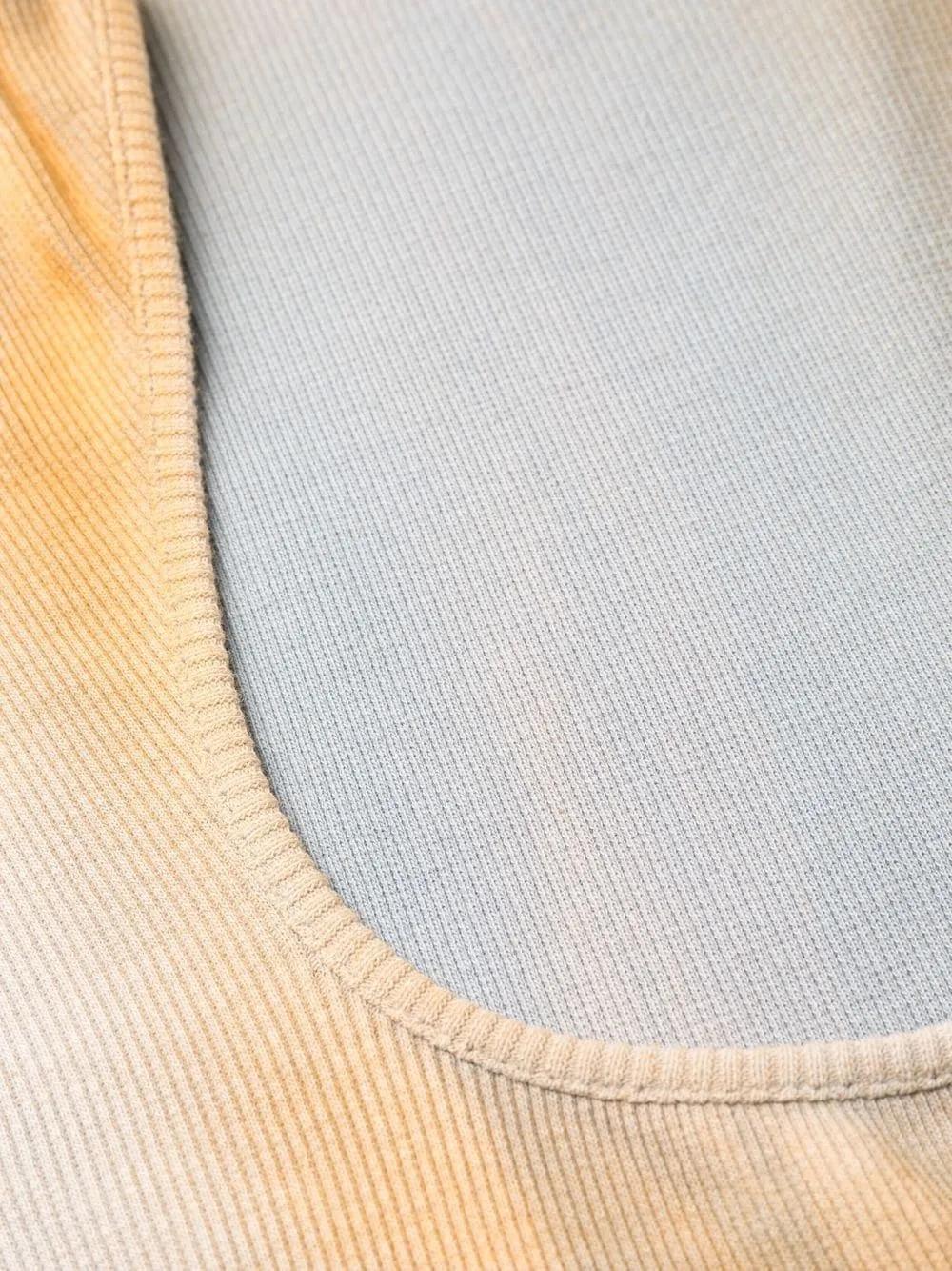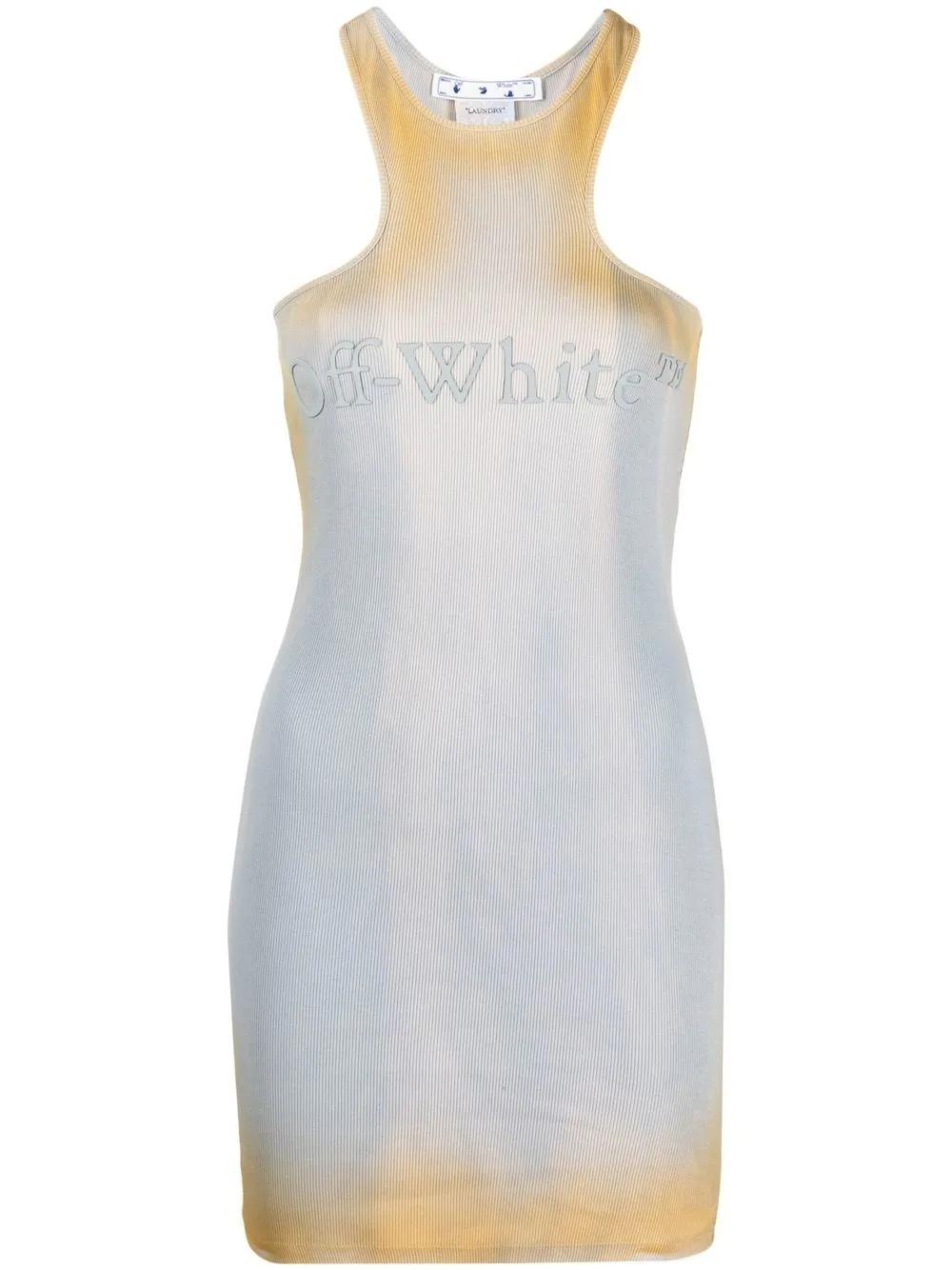 multicolour cotton blend distressed effect logo print to the front round neck sleeveless straight hem
