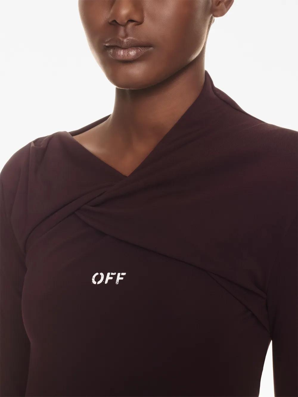 brown/white stretch-jersey twist detailing gathered detailing logo print at the chest long sleeves thigh-length