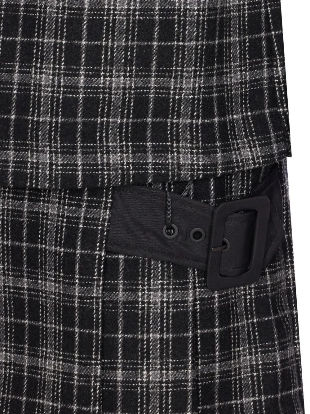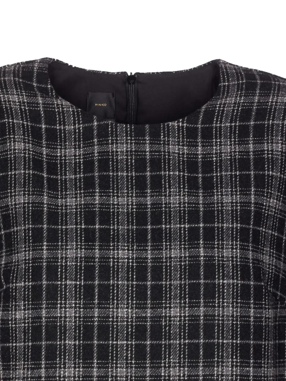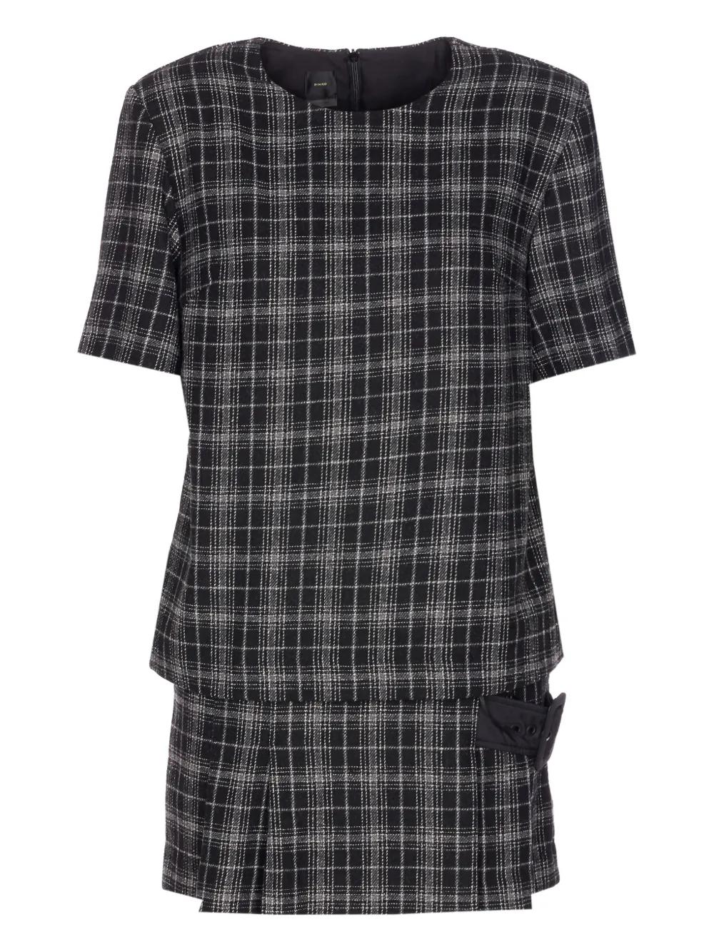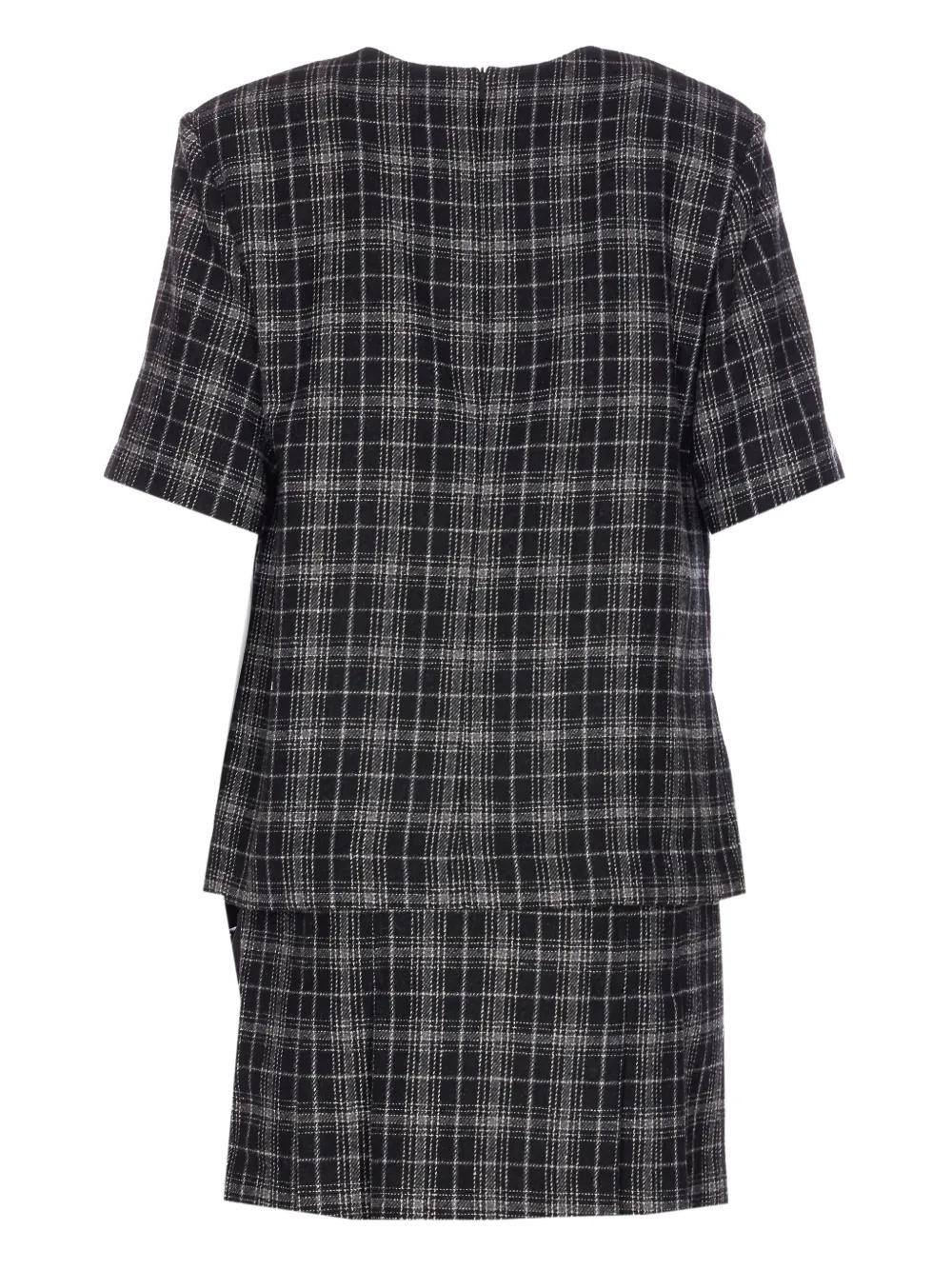 black check pattern short sleeves crew neck back zip fastening belted waist reinforced shoulders