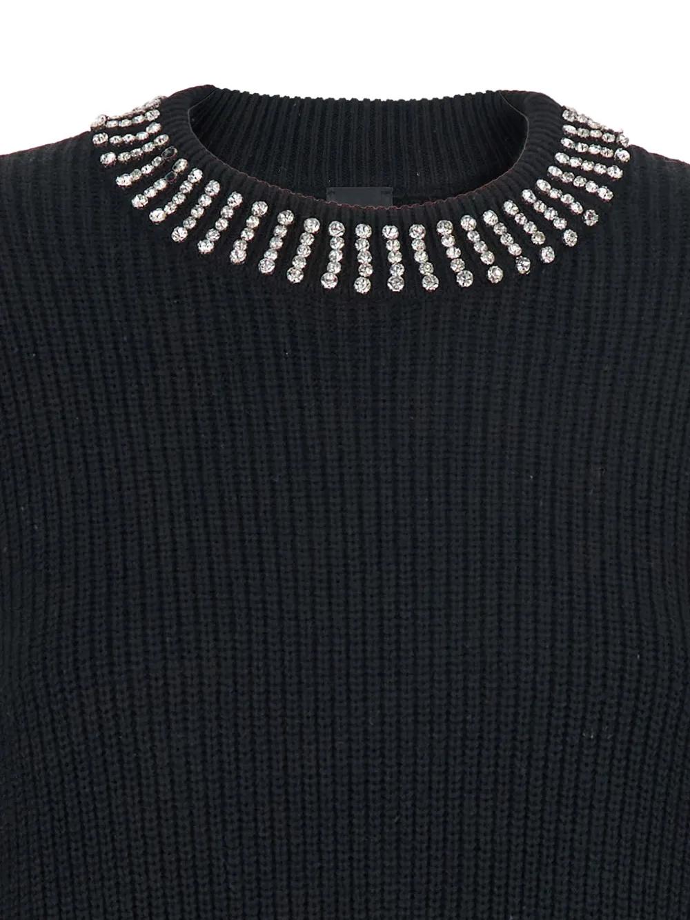 black crystal embellishment ribbed knit round neck long sleeves wide cuffs