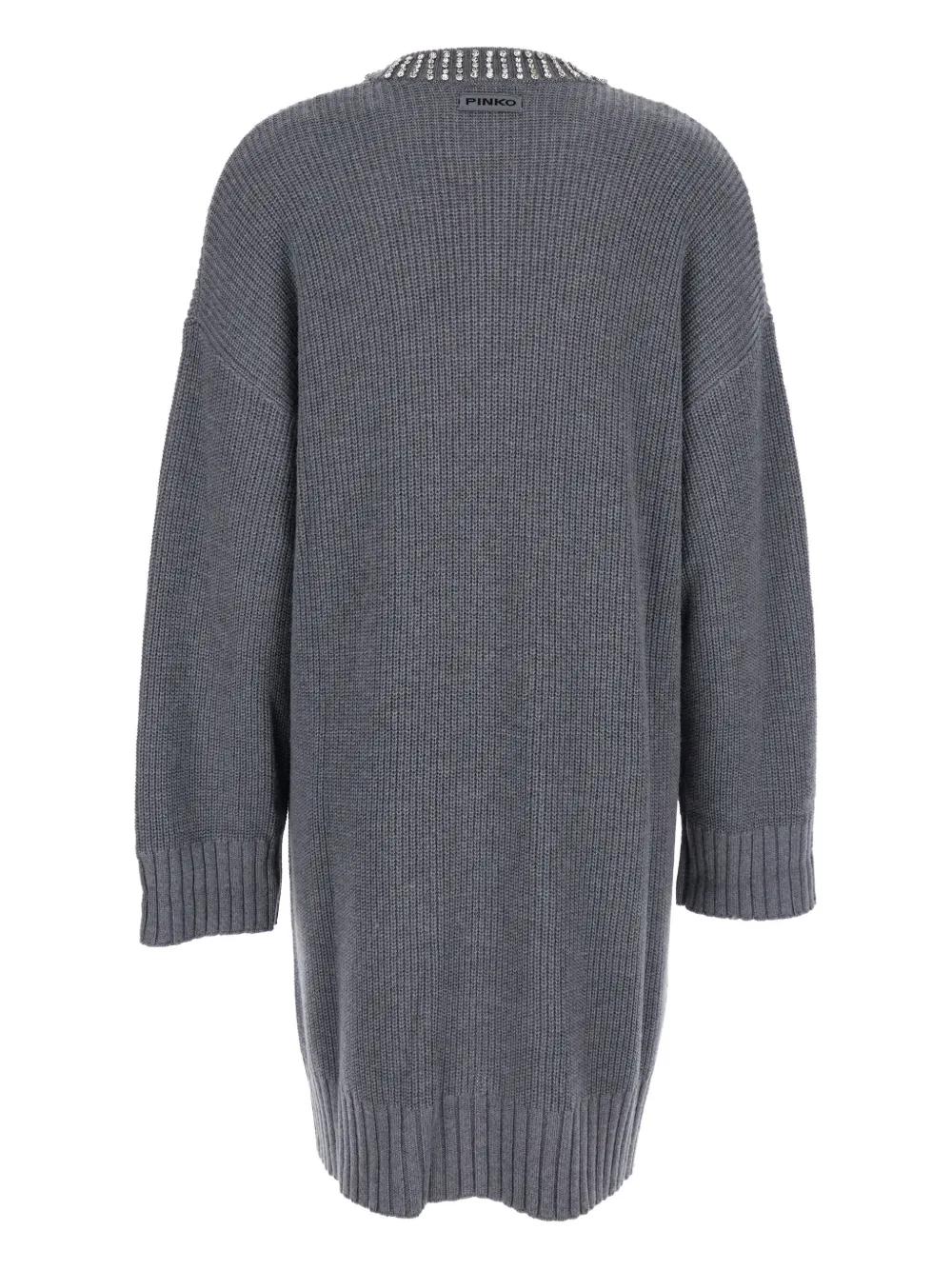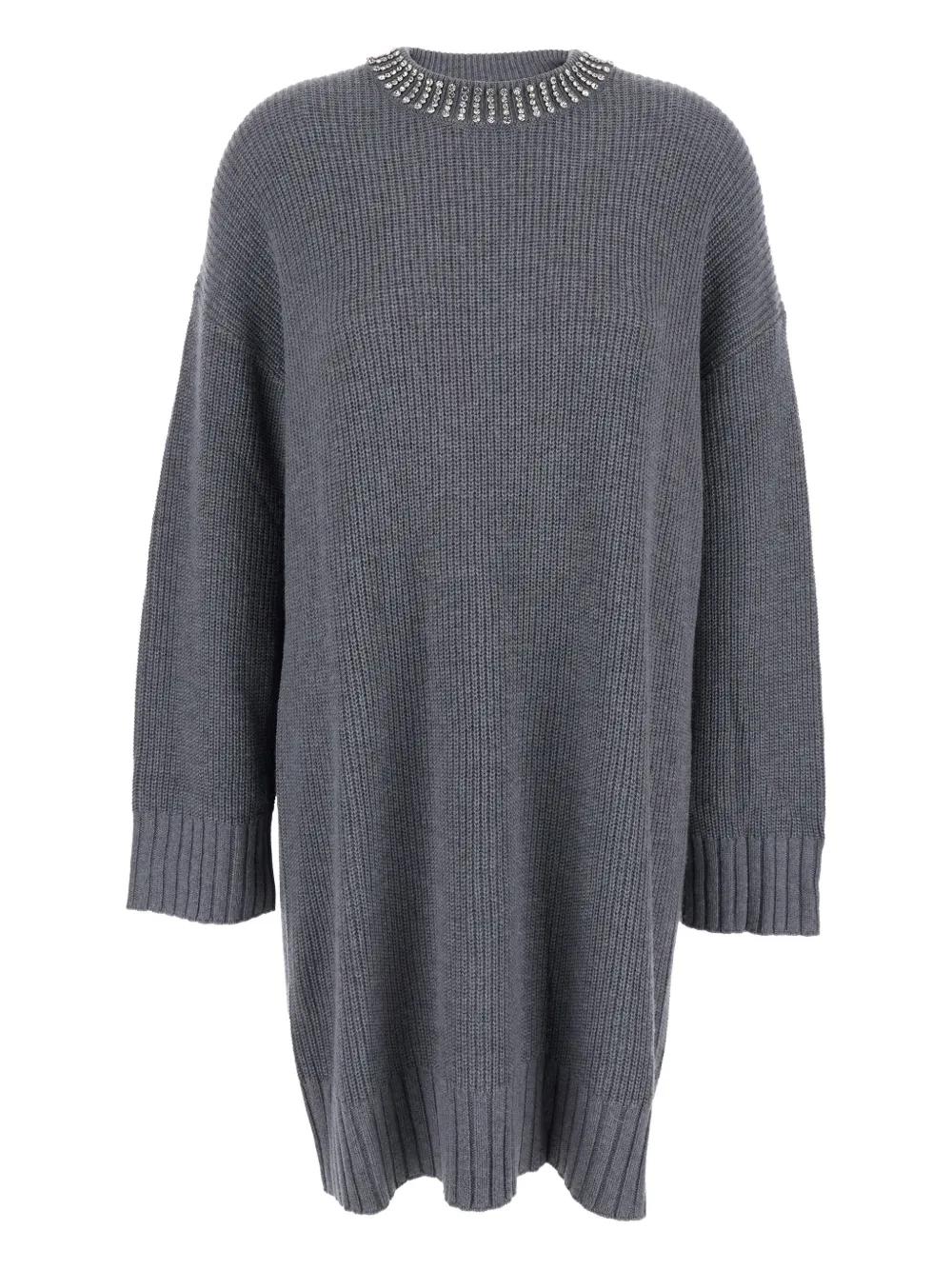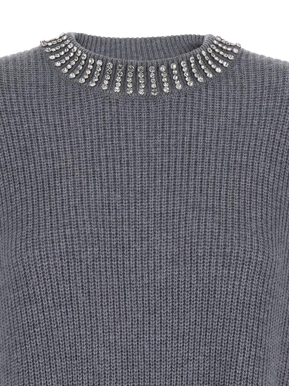 grey crystal embellishment ribbed knit long sleeves round neck dropped shoulders