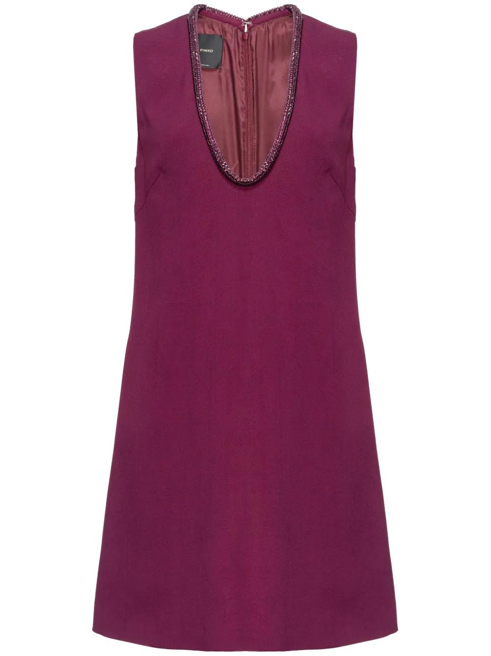 violet purple beaded trim detail plunging U-neck rear zip fastening sleeveless shift style straight hem