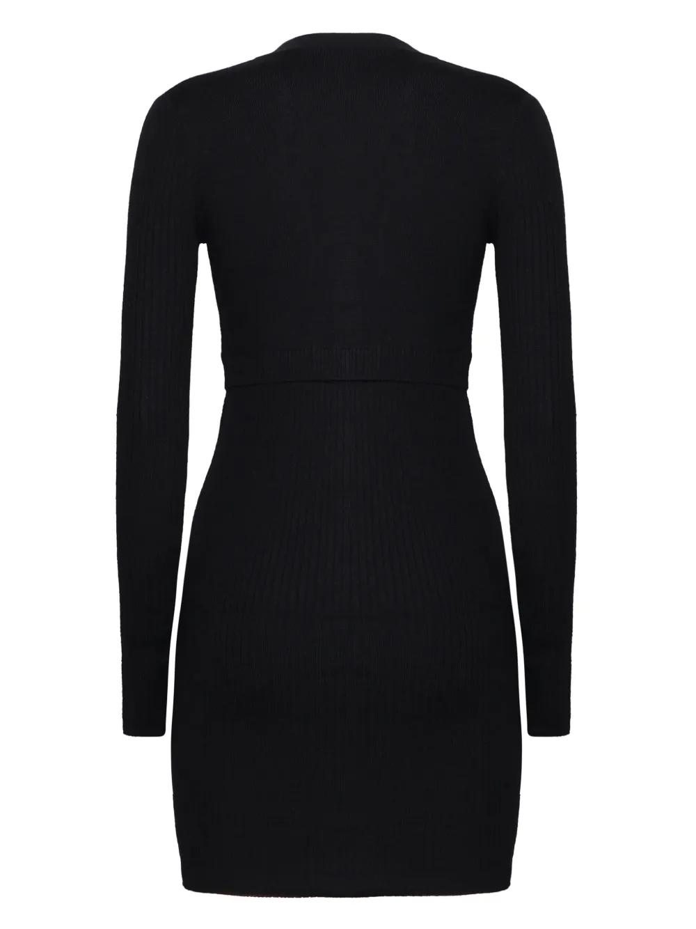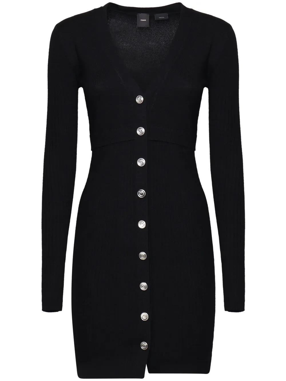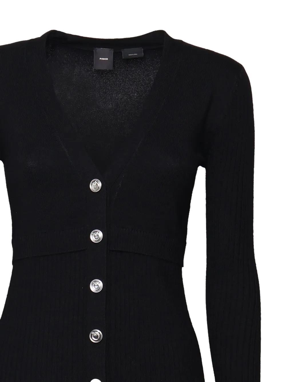 black wool blend ribbed knit front button fastening V-neck long sleeves straight hem