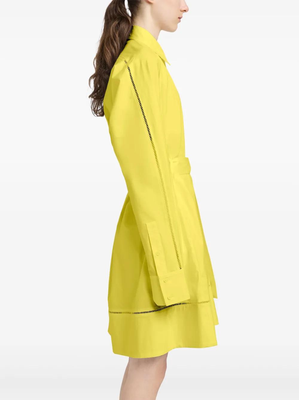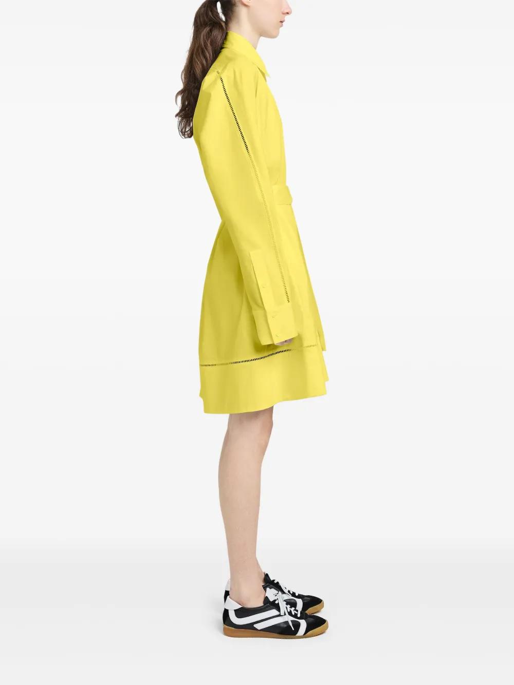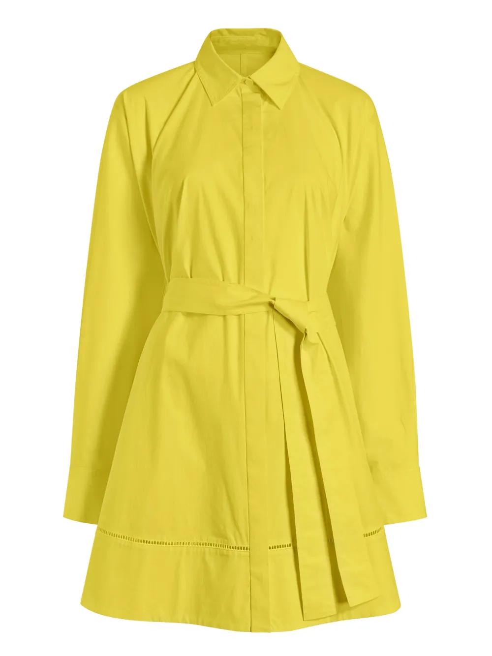 citron yellow concealed front button fastening detachable and adjustable waist belt two side inset pockets buttoned cuffs