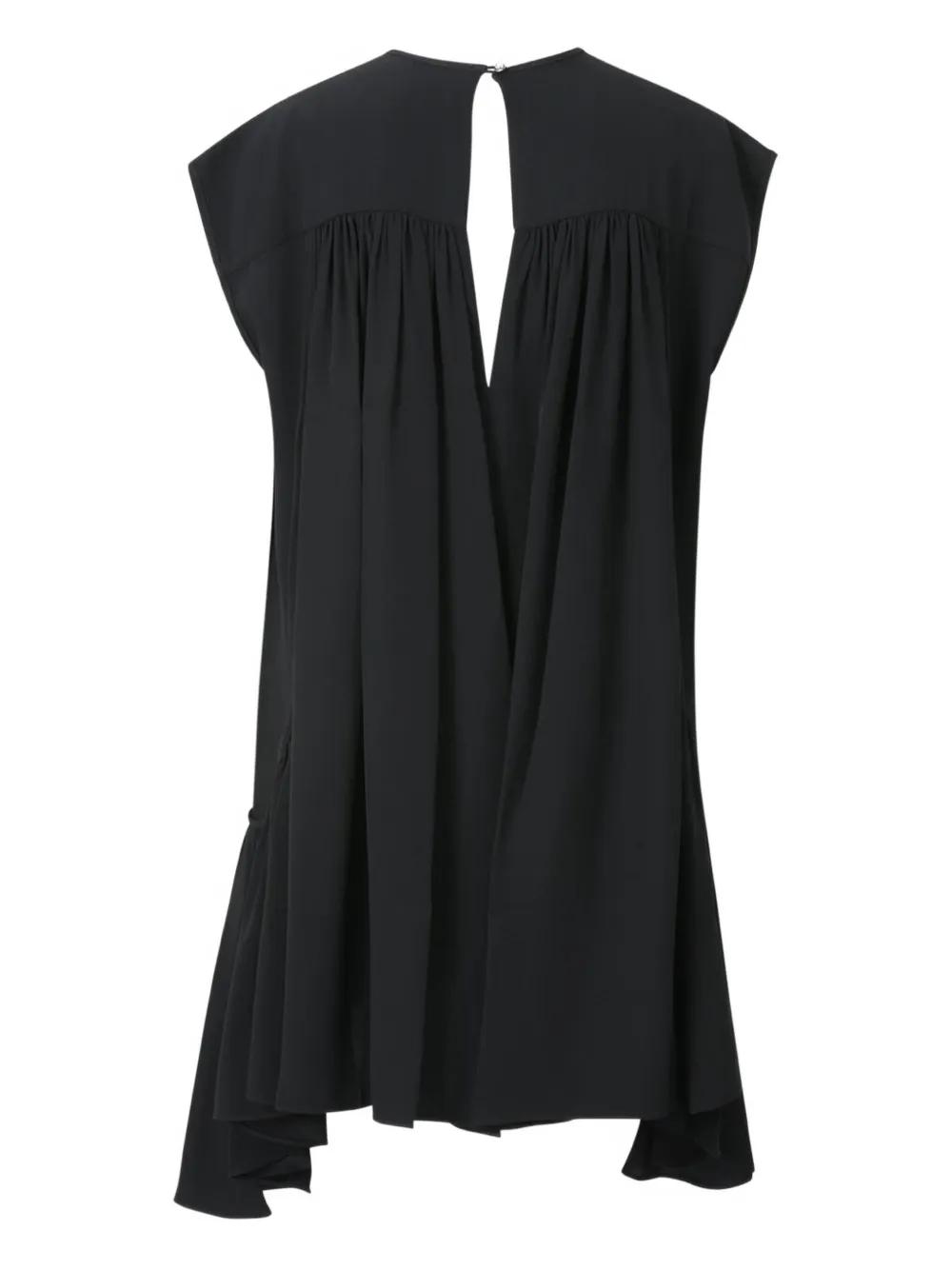 black single rear button fastening keyhole detail to the rear cap sleeves handkerchief hem