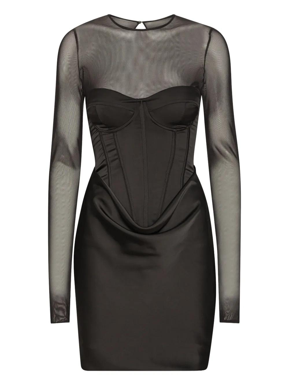 black mesh panelling corset detail round neck long sleeves keyhole detail at the rear