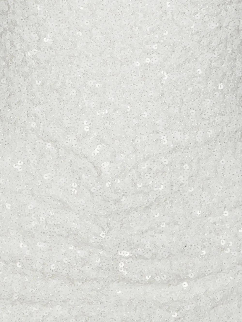 white sequin embellishment high neck long sleeves ruched detailing zip fastening