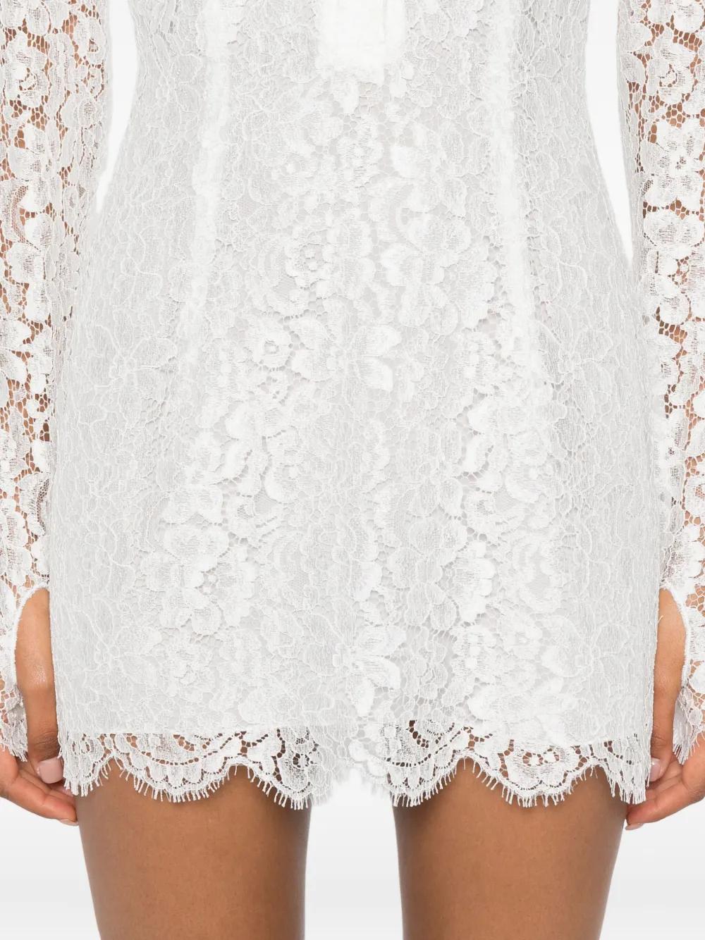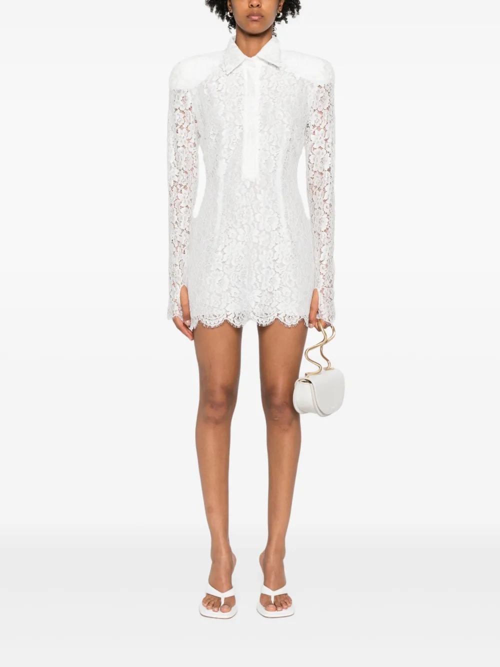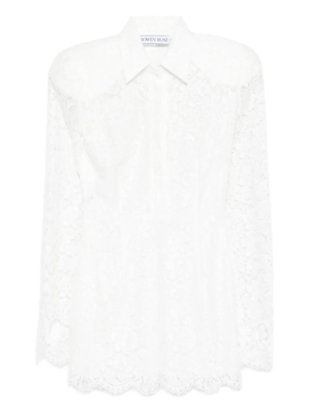 white floral lace long sleeves scalloped hem polo collar front button fastening