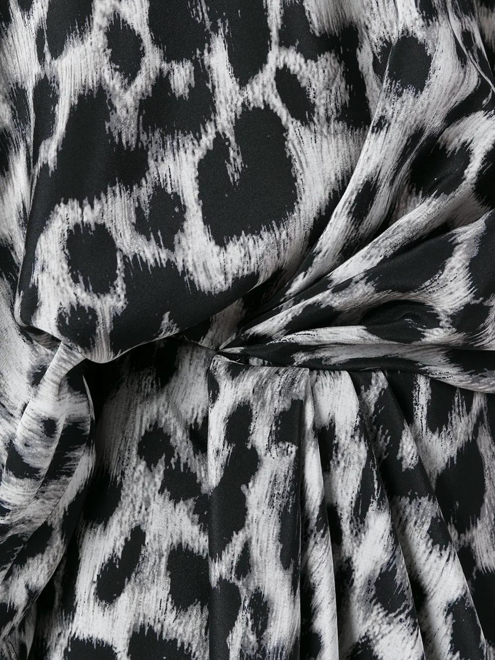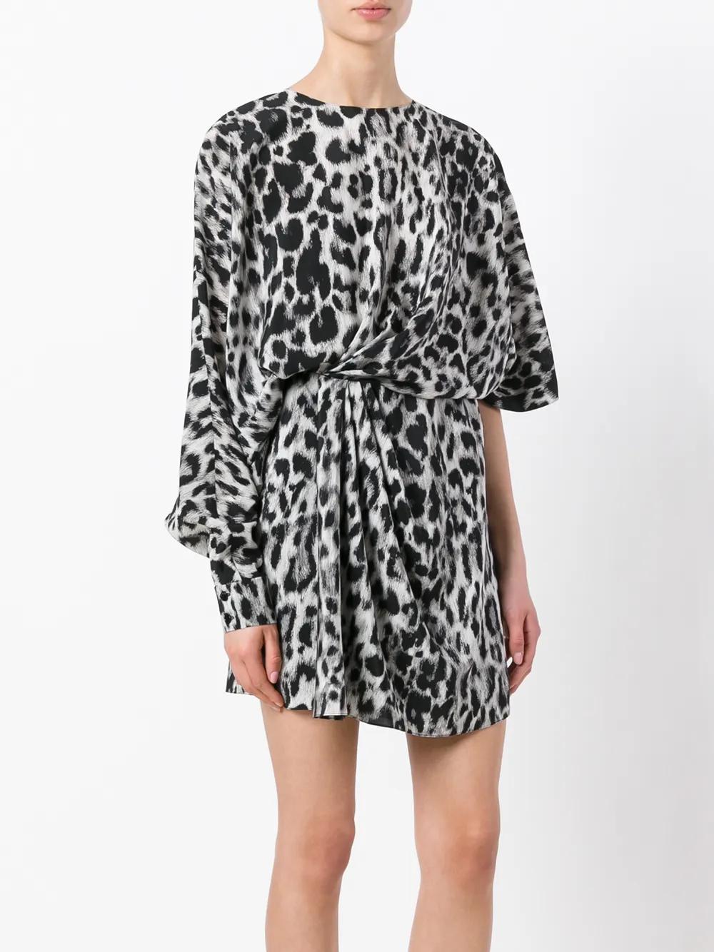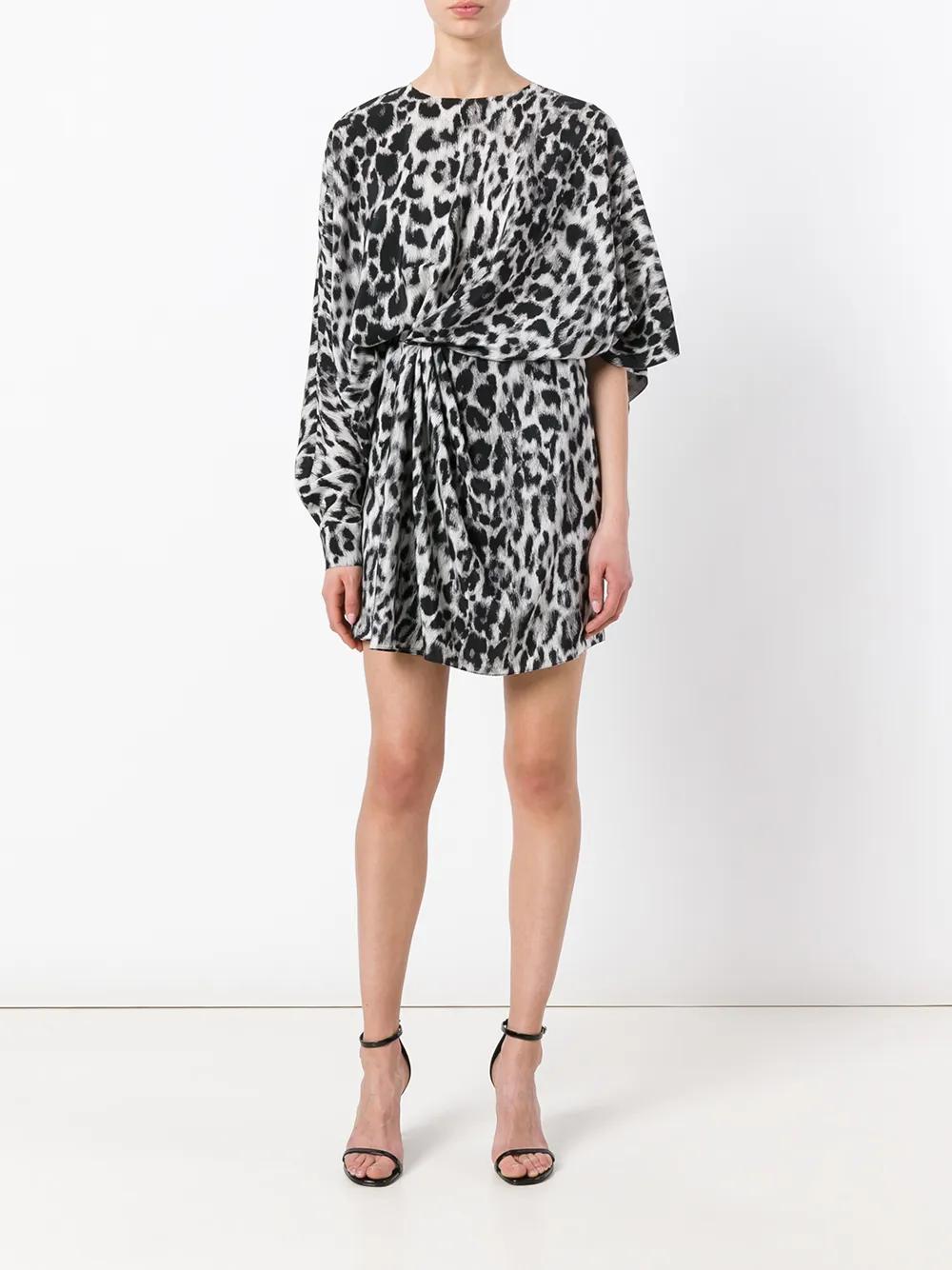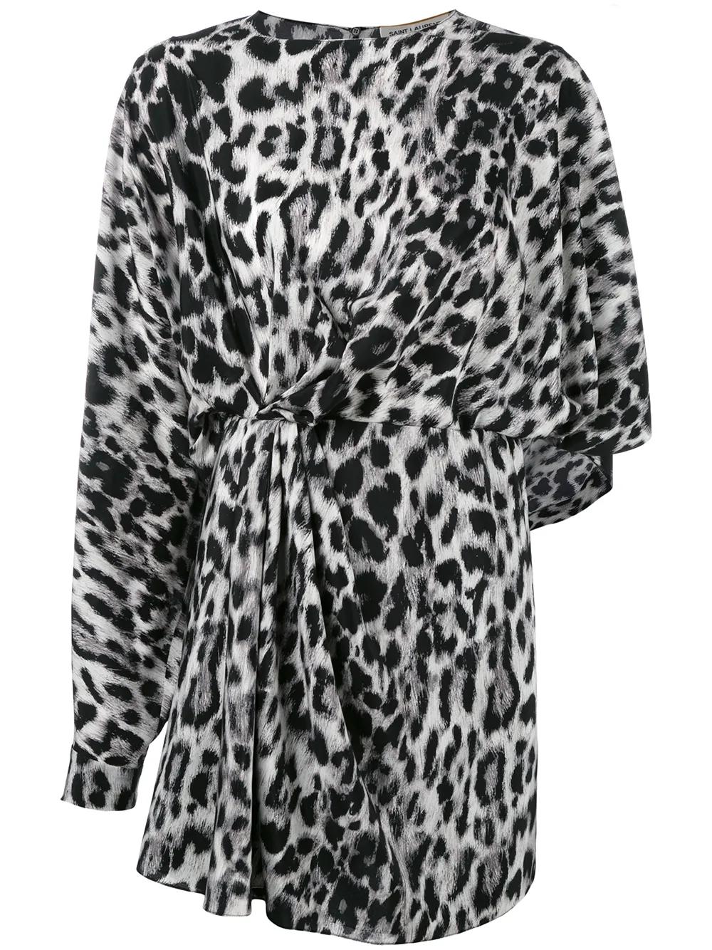 Lending a rock ’n’ roll edge to a classic, this asymmetric cocktail dress by Saint Laurent is stamped with an easy-to-wear leopard print throughout. Crafted in silk and featuring a round neck and long sleeves, this piece is finished with gentle gathering at the waist. Wear this Saint Laurent piece with heeled sandals and dark shades to rock an elegant summertime look.