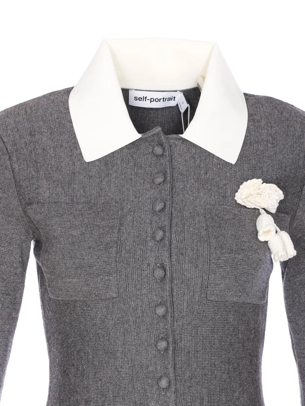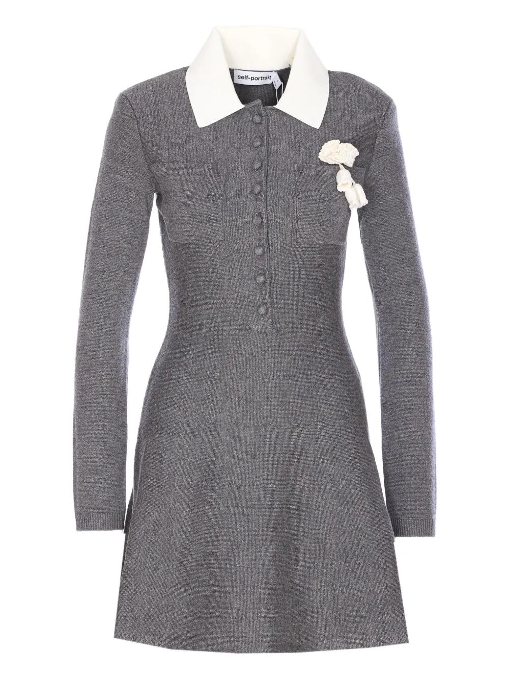 Self-Portrait crochet-flower collared dress - Grey