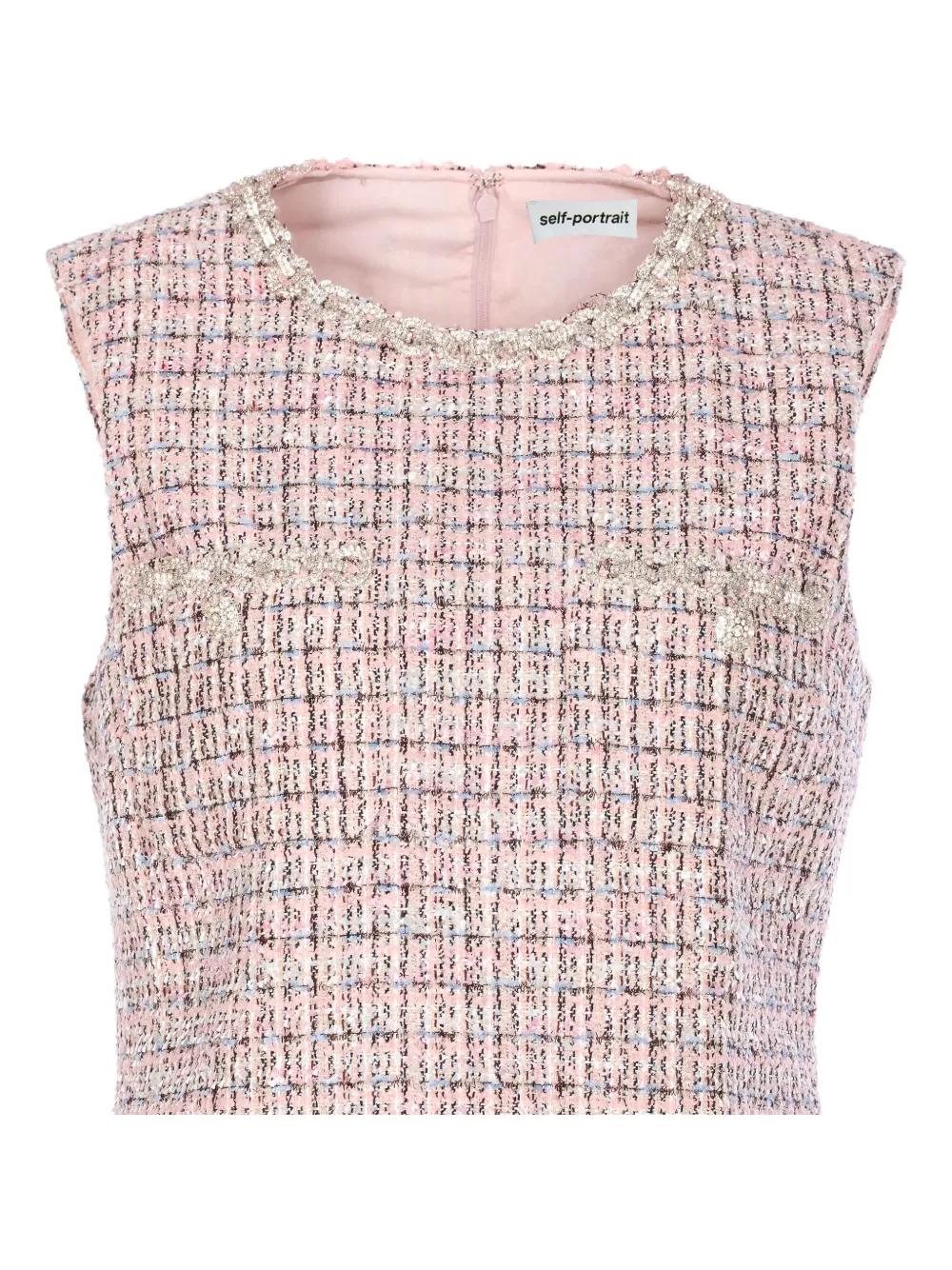 pink sleeveless crystal embellishments pockets hook and zip fastening