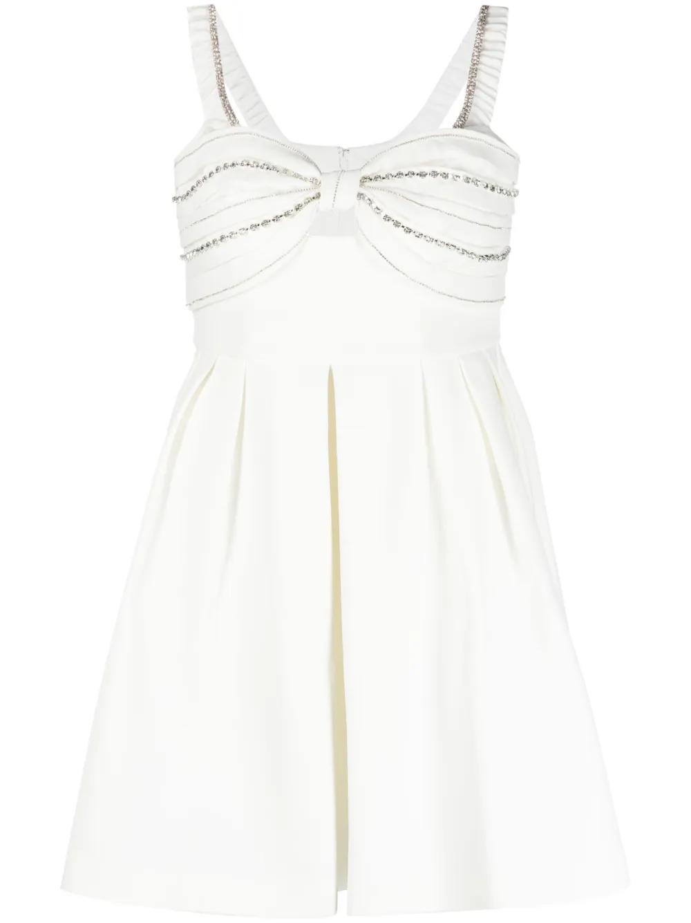 white cut-out detailing crystal embellishment sweetheart neck rear zip fastening sleeveless flared straight hem thigh-length