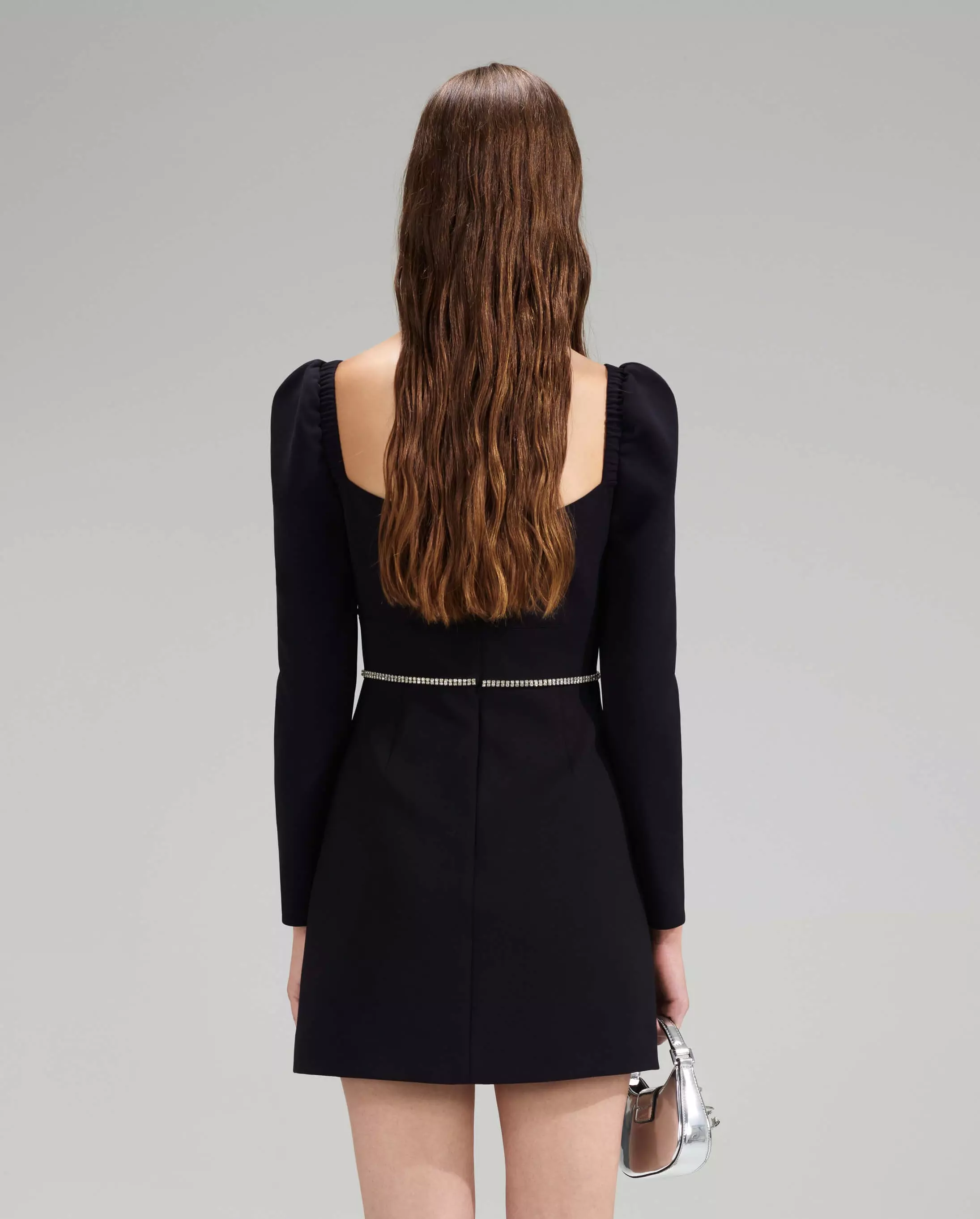 <ul> <li>sukienka mini Self-Portrait</li> <li>w&nbsp;czarnym kolorze</li> <li>kwadratowy dekolt ozdobiony kryształową lam&oacute;wką</li> <li>dopasowany fason</li> <li>d&oacute;ł mini z rozporkiem</li> <li>sukienka zapinana z tyłu na suwak</li> <li>długie rękawy z marszczeniami</li> <li>wykonana z krepy</li> </ul>