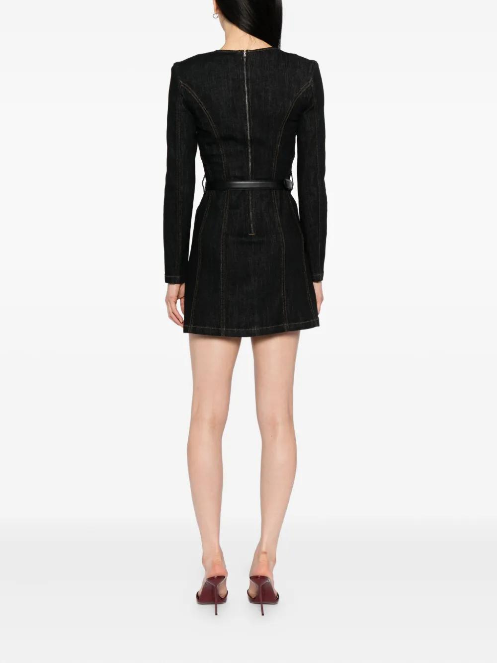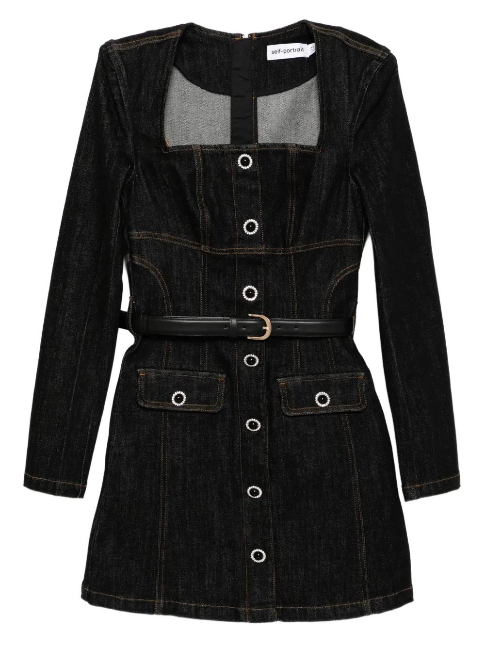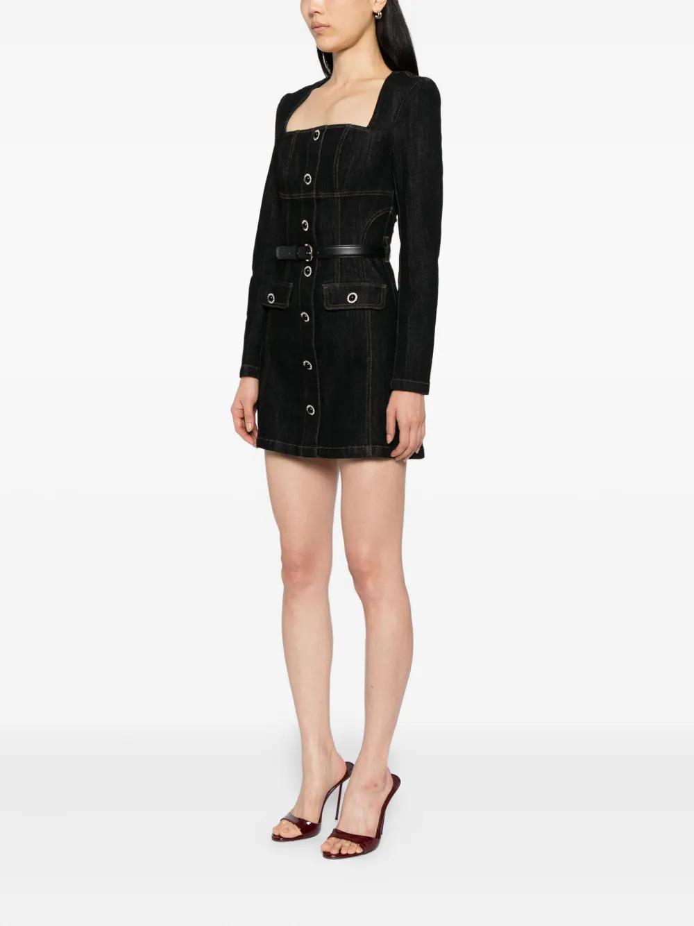 indigo blue concealed rear zip fastening detachable and adjustable waist belt square neck two front flap pockets