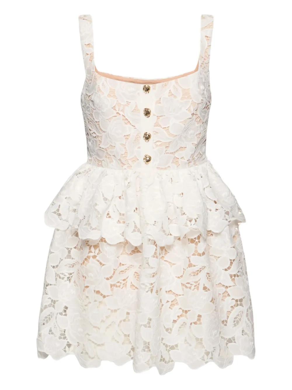 Self-Portrait frill button-detail mini dress - White