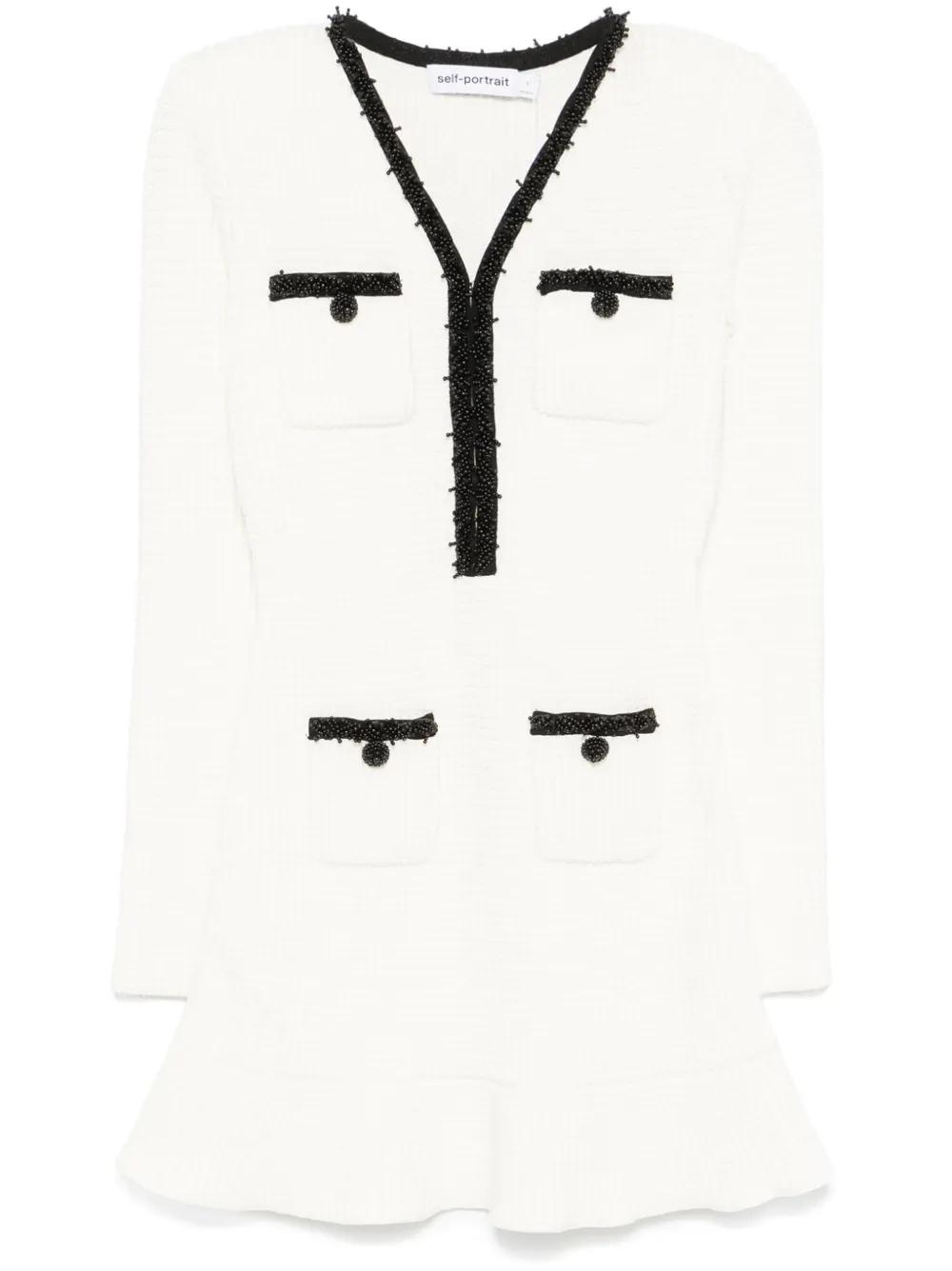 Self-Portrait knitted mini dress - White