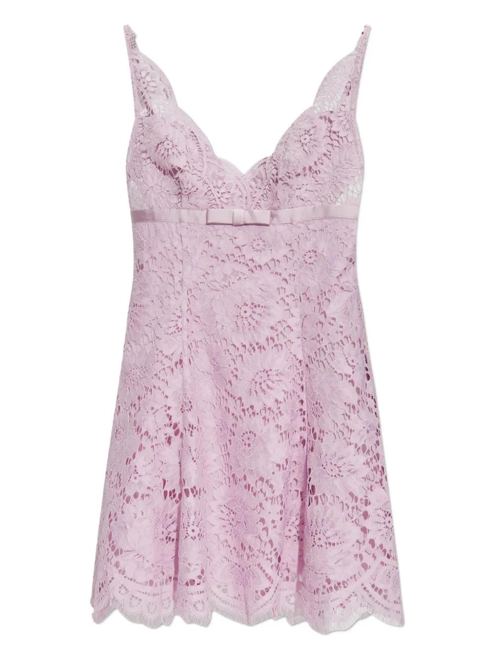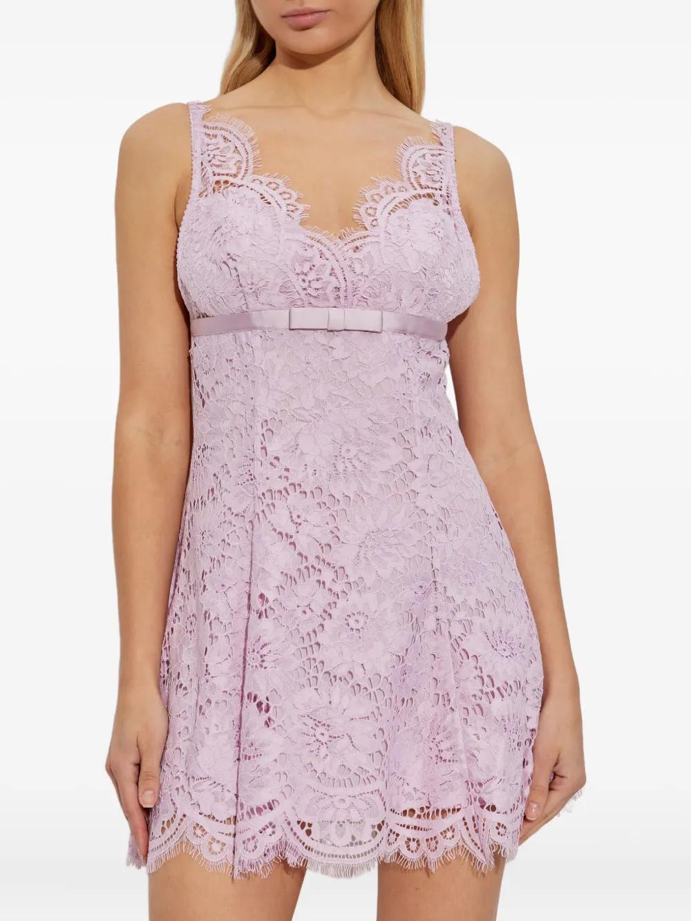 pink lace panelled scalloped hem V-neck bow detail sleeveless