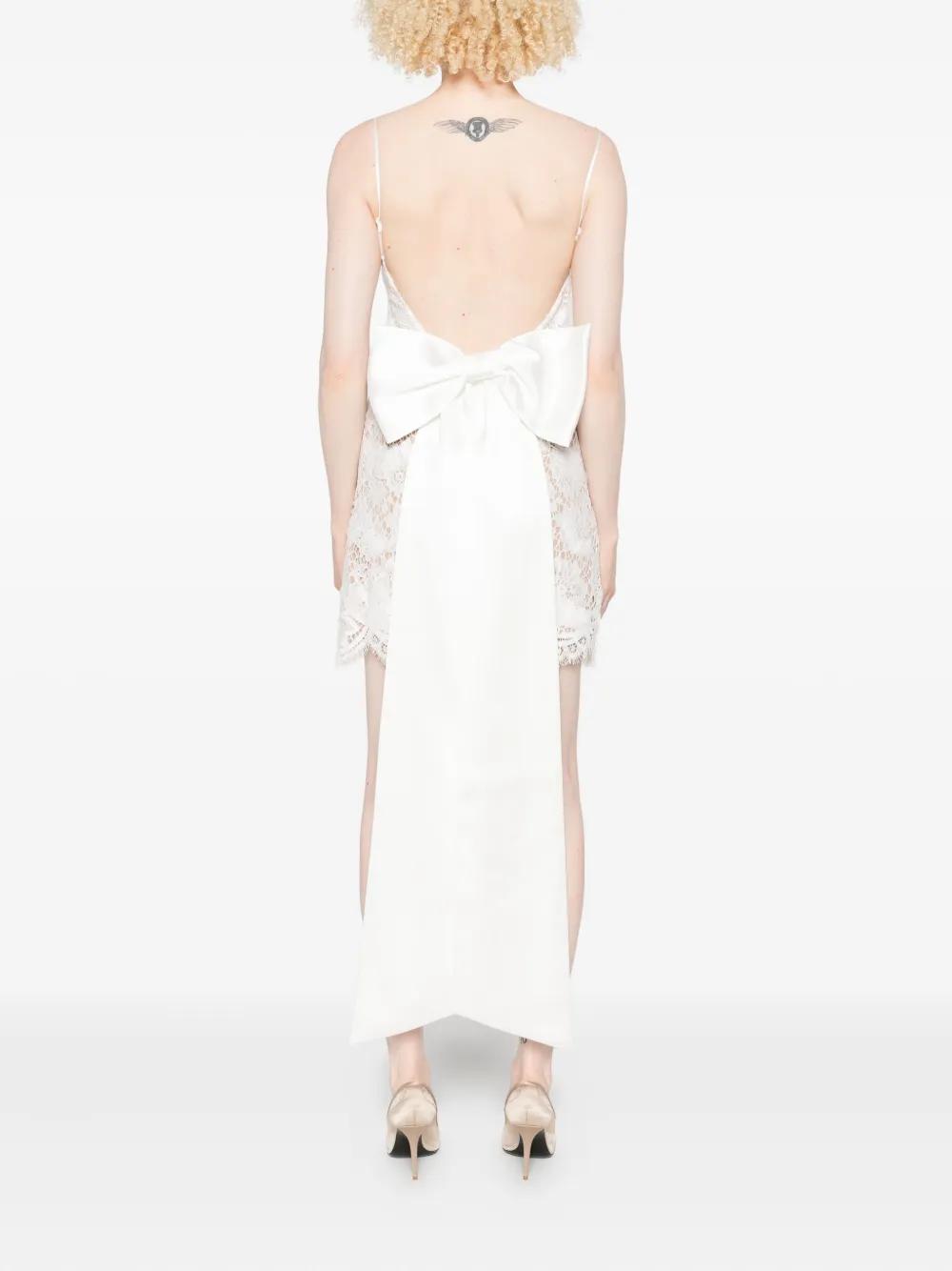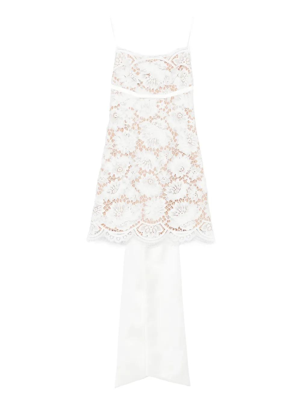 white floral lace scalloped hem sleeveless straight neckline oversized bow