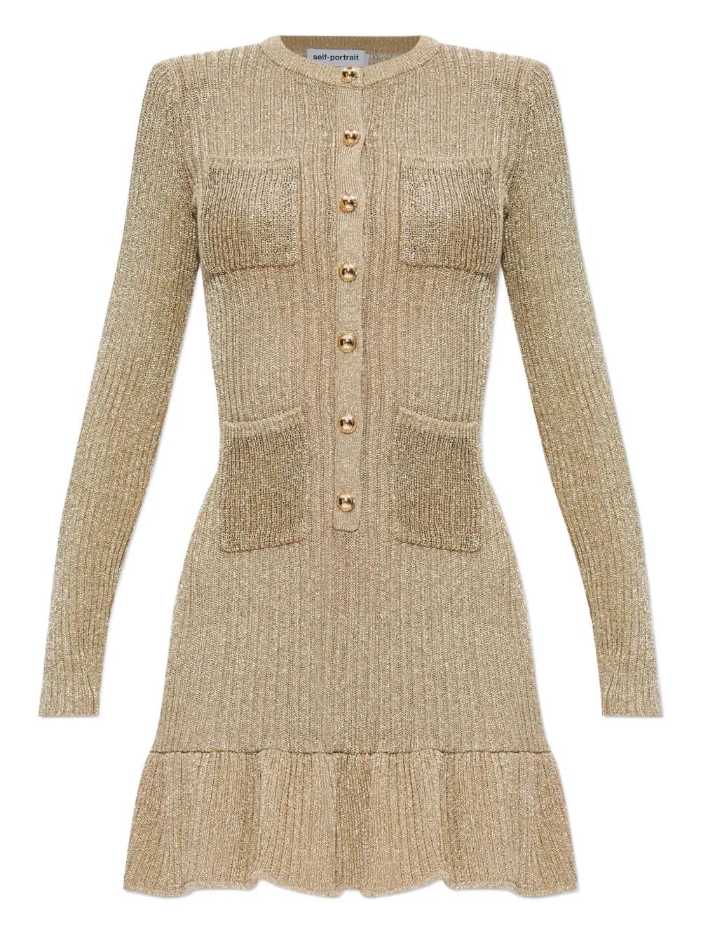 Self-Portrait long-sleeve ruffled dress - Neutrals