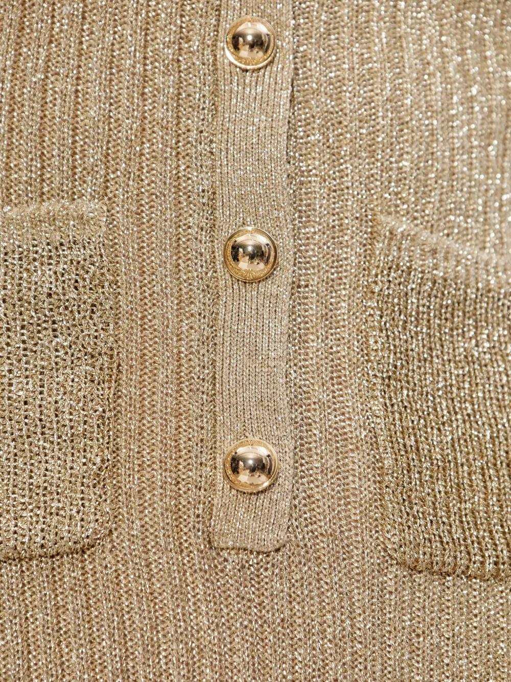 gold-tone ruffled hem long sleeves front button placket front patch pockets