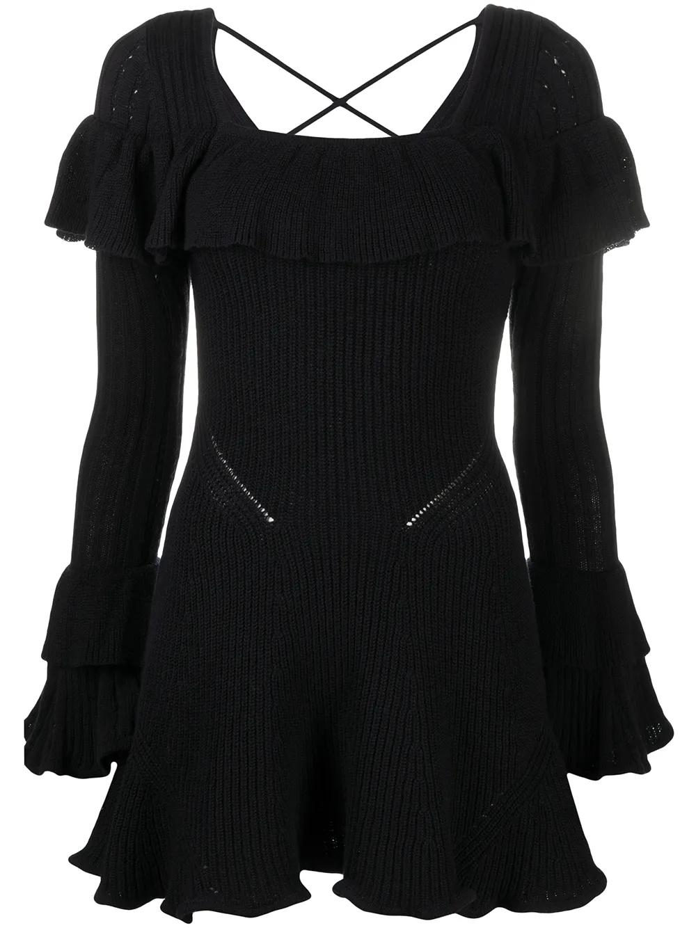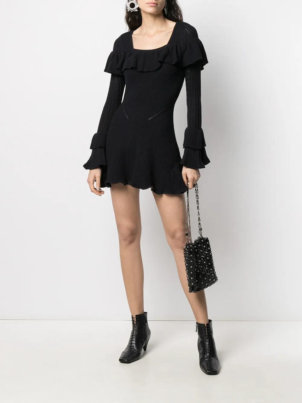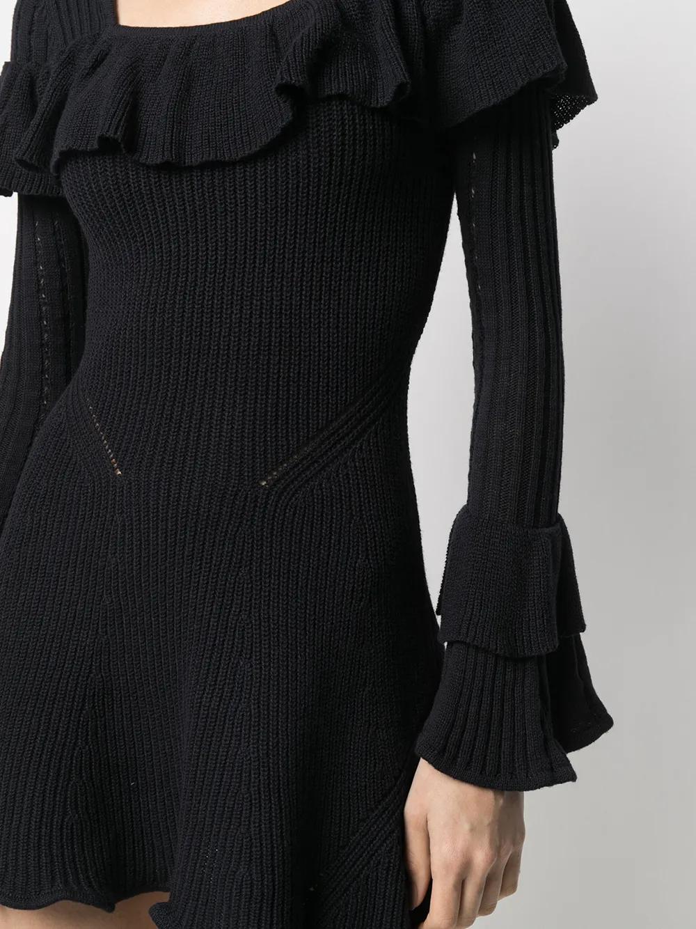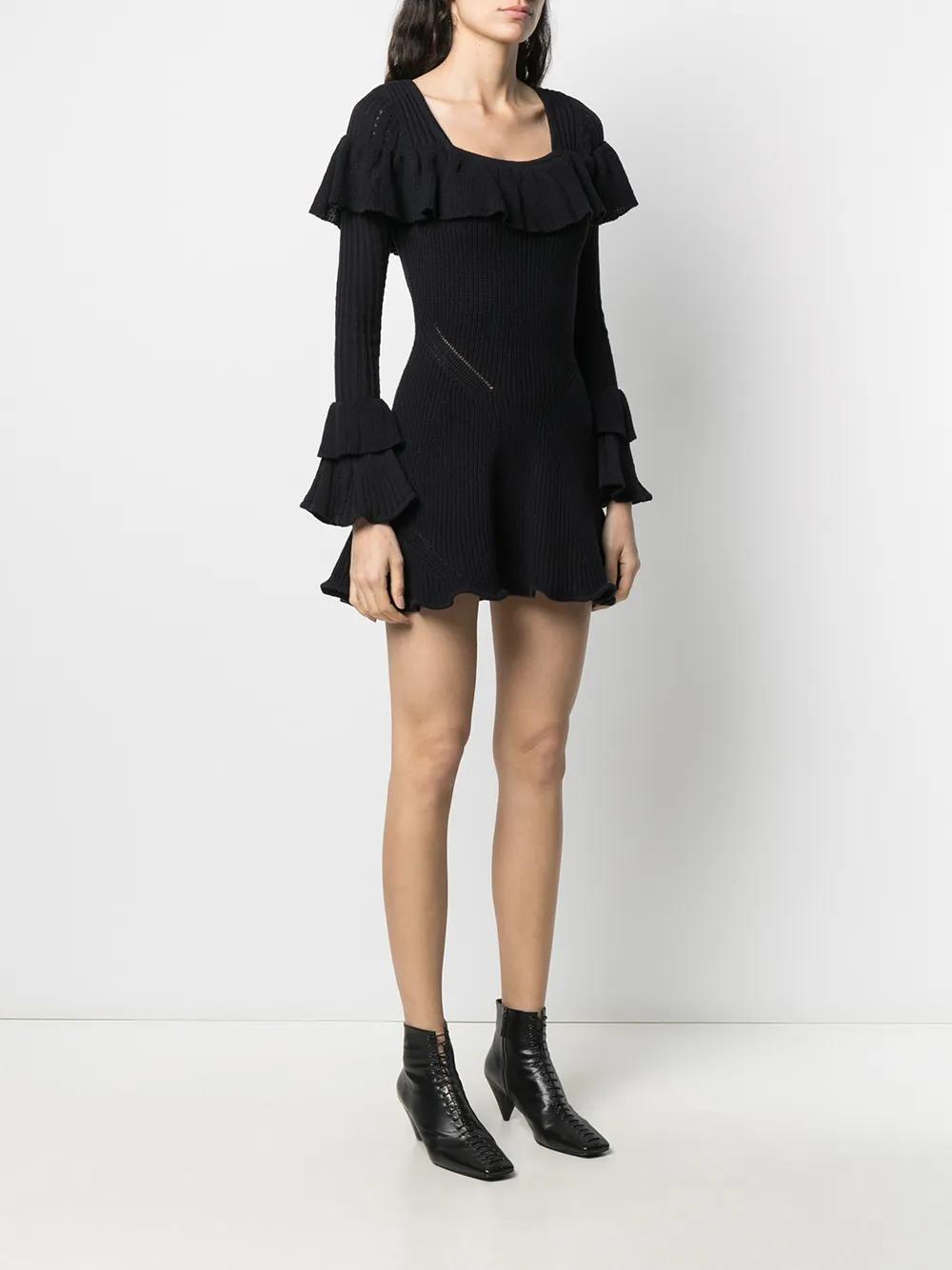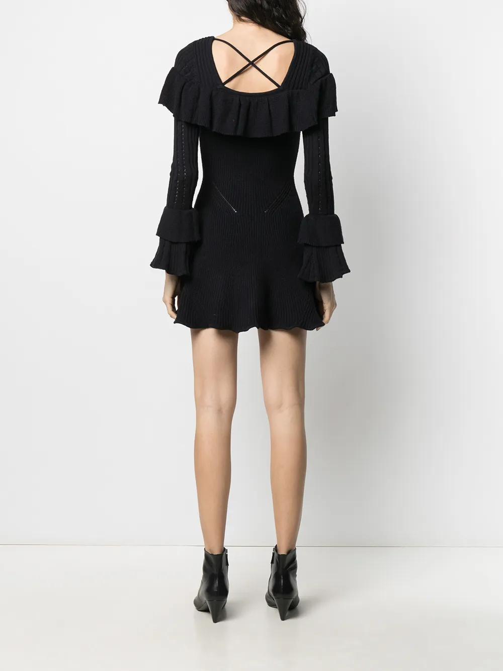 Self-Portrait ruffled knitted mini dress - Blue