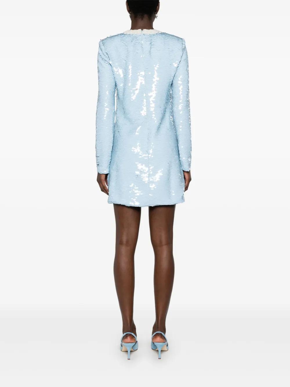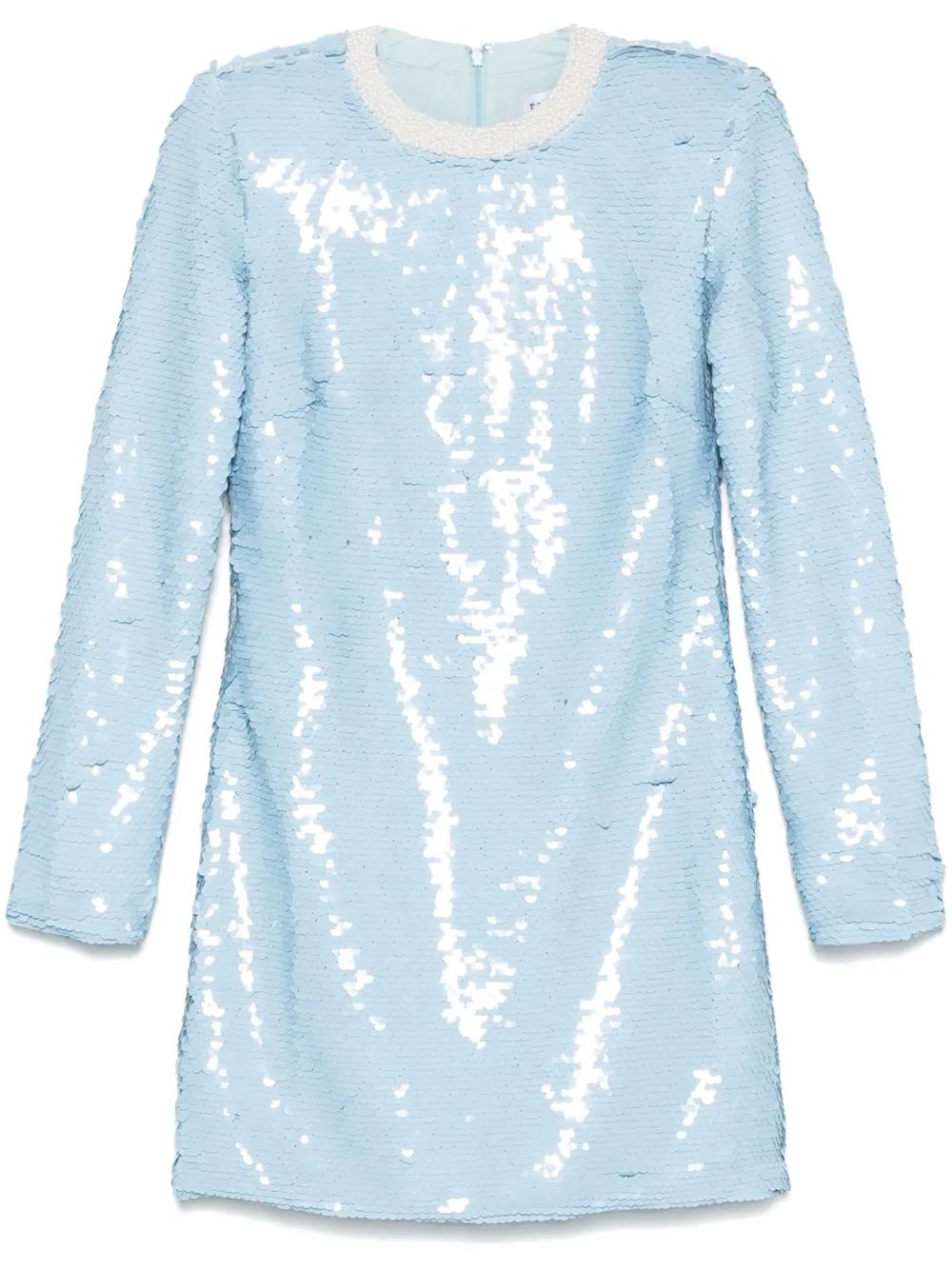 powder blue concealed rear hook and zip fastening faux-pearl detailing shoulder pads full lining