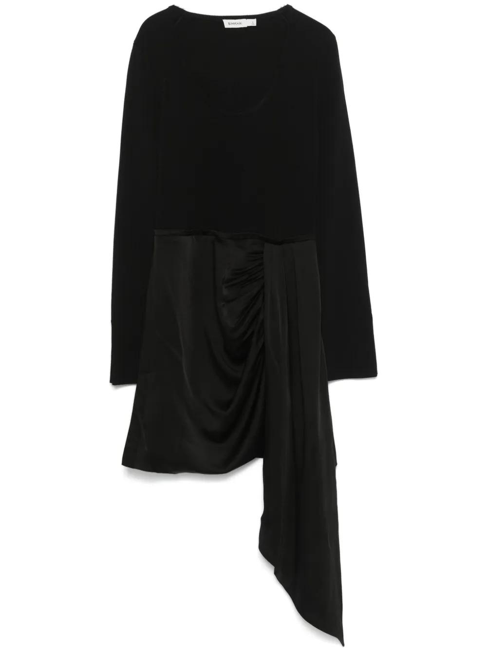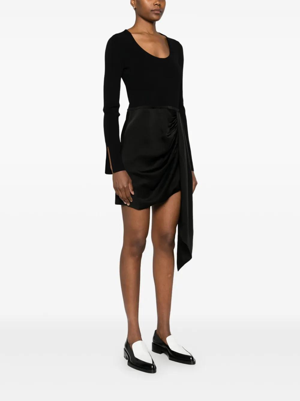 black knitted construction draped detailing concealed side zip fastening scoop neck long sleeves split cuffs contrasting panel detail ruched detailing straight hem
