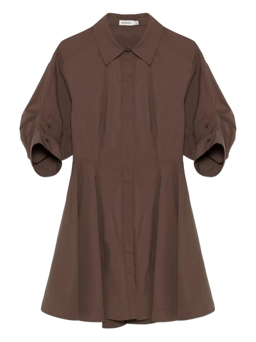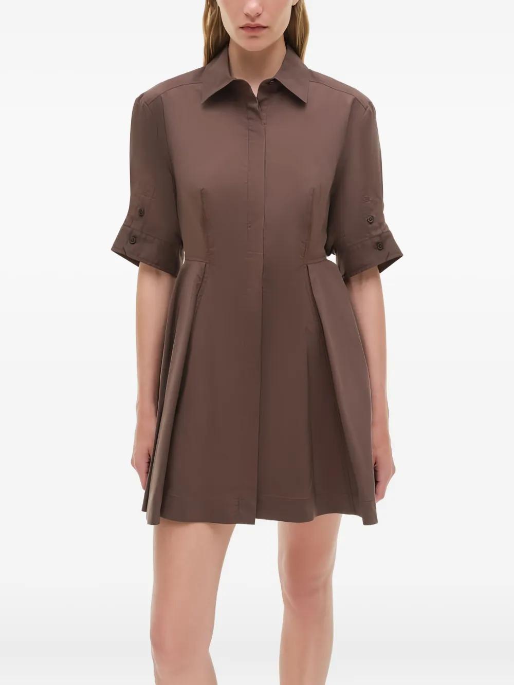 chocolate point collar buttoned sleeves front button fastening short sleeves pleated skirt