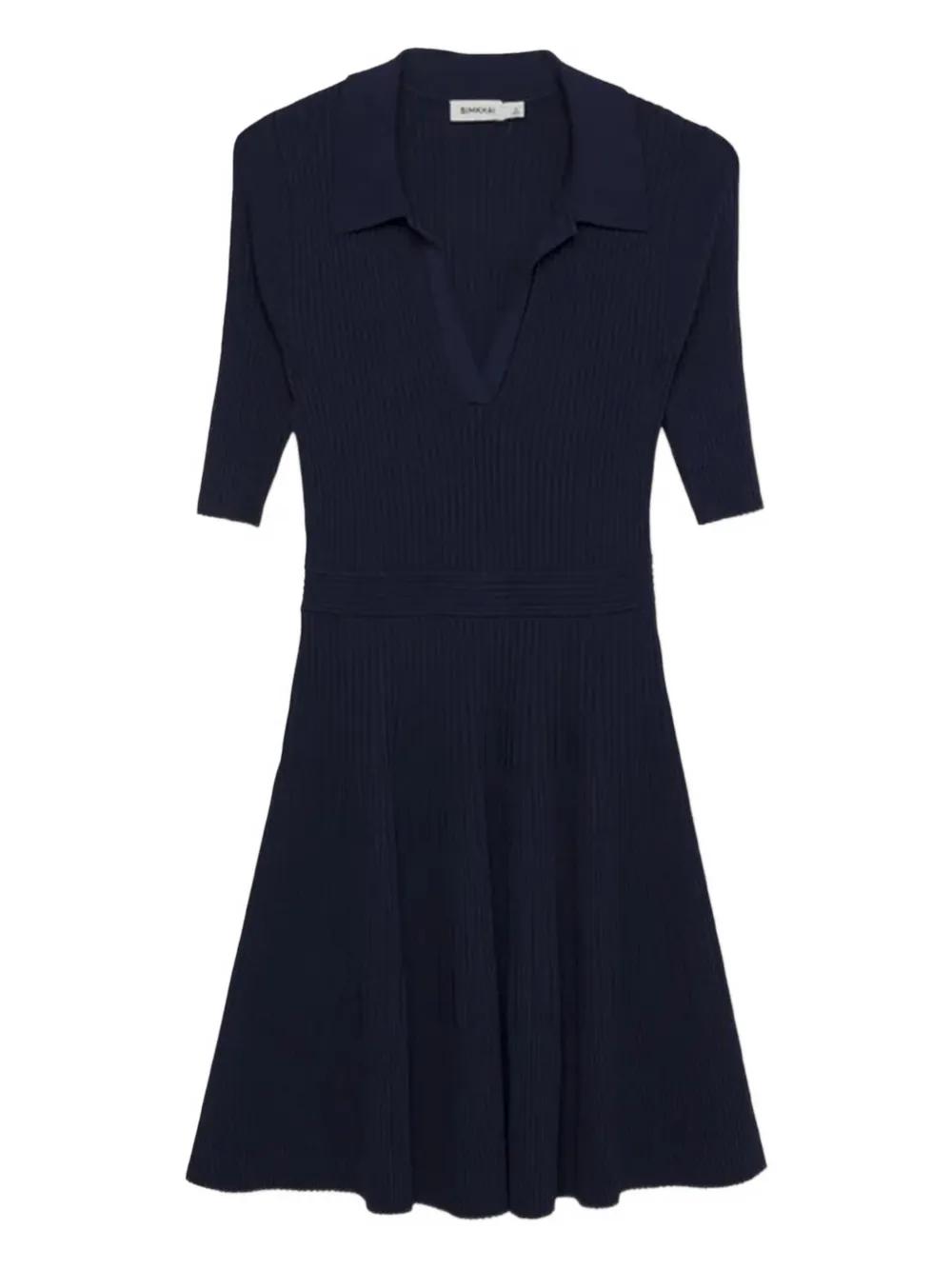 dark blue raised stitching side zip closure polo collar elbow-length sleeves