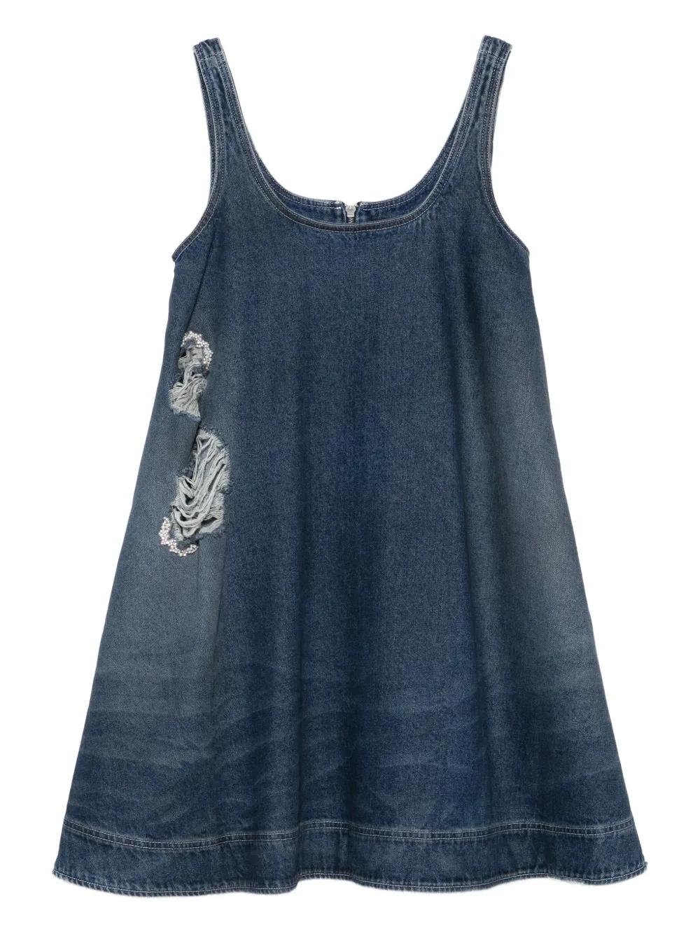 blue A-line distressed effect sleeveless rear zip fastening embroidered detailing