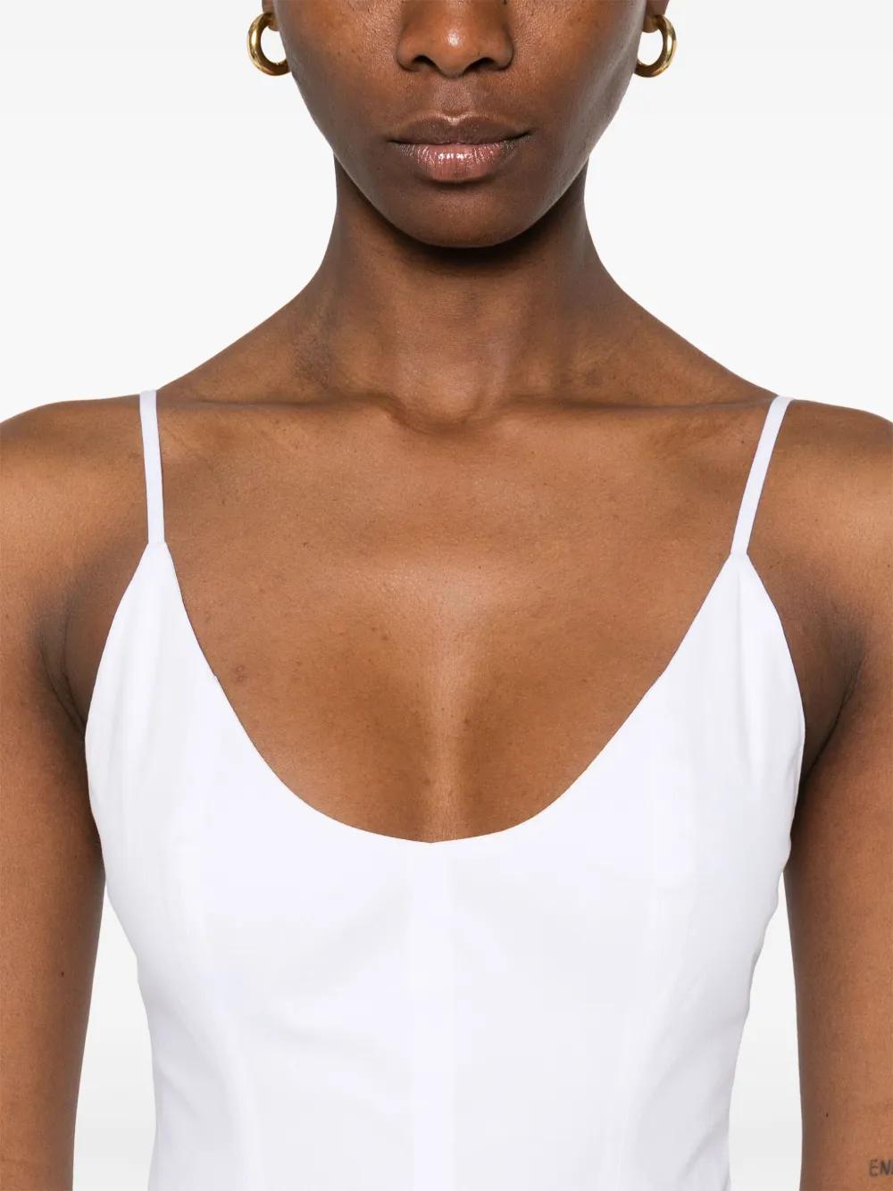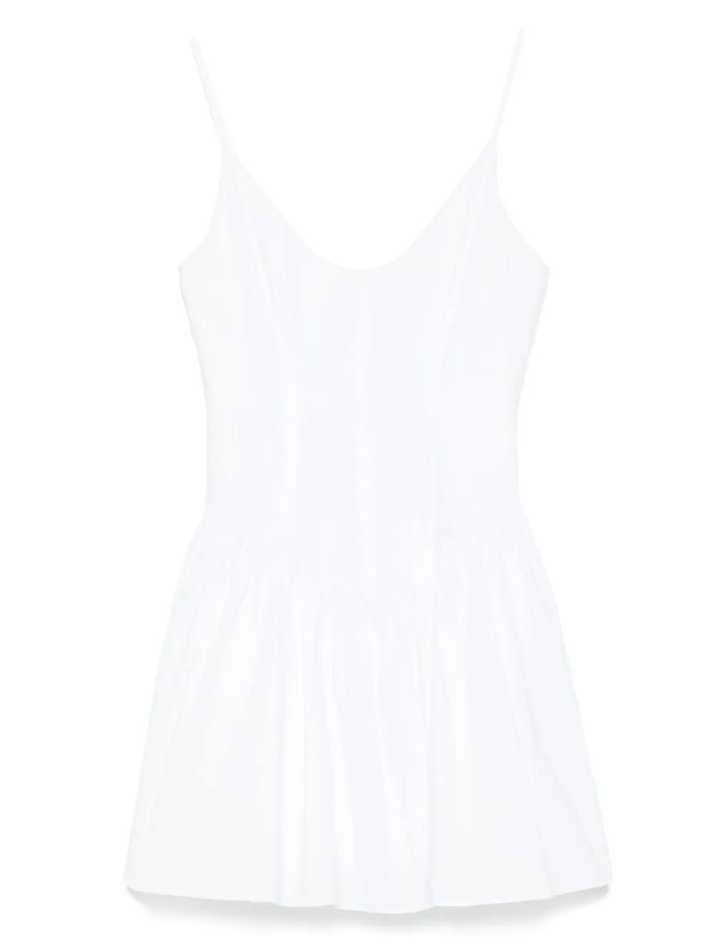 white concealed rear zip fastening adjustable spaghetti straps low-rise flared skirt