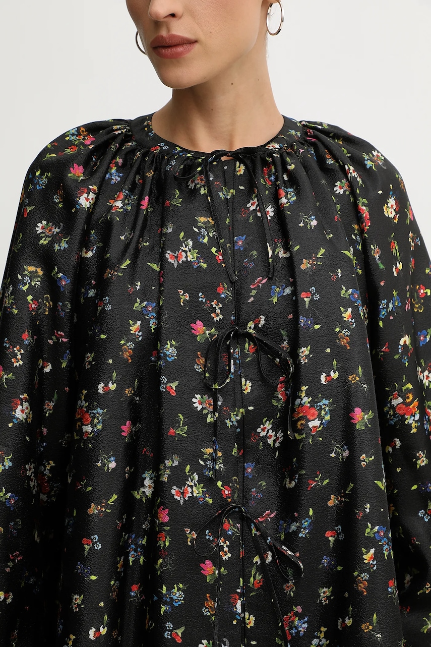 - Ten produkt został częściowo uszyty z poliestru pochodzącego z recyklingu. - Luźny krój zapewniający pełną swobodę ruchów. - Rękaw raglanowy, dzięki swojej konstrukcji, zapewnia większą swobodę ruchu. - Model na podszewce. - Ozdobne wiązanie z przodu. - Długie, bufiaste rękawy. - Rękawy wykończone wąskim, elastycznym ściągaczem. - Długość rękawa(mierzona od dekoltu): 73 cm. - Szerokość pod pachami: 65 cm. - Długość: 93 cm. - Wymiary podane dla rozmiaru: S.