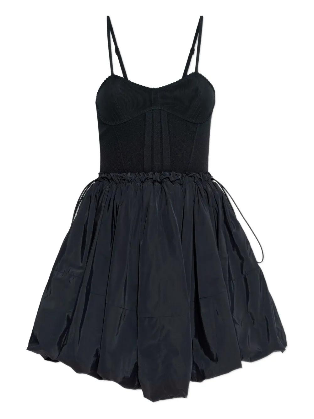black scalloped trim spaghetti straps gathered detail open back clasp fastening