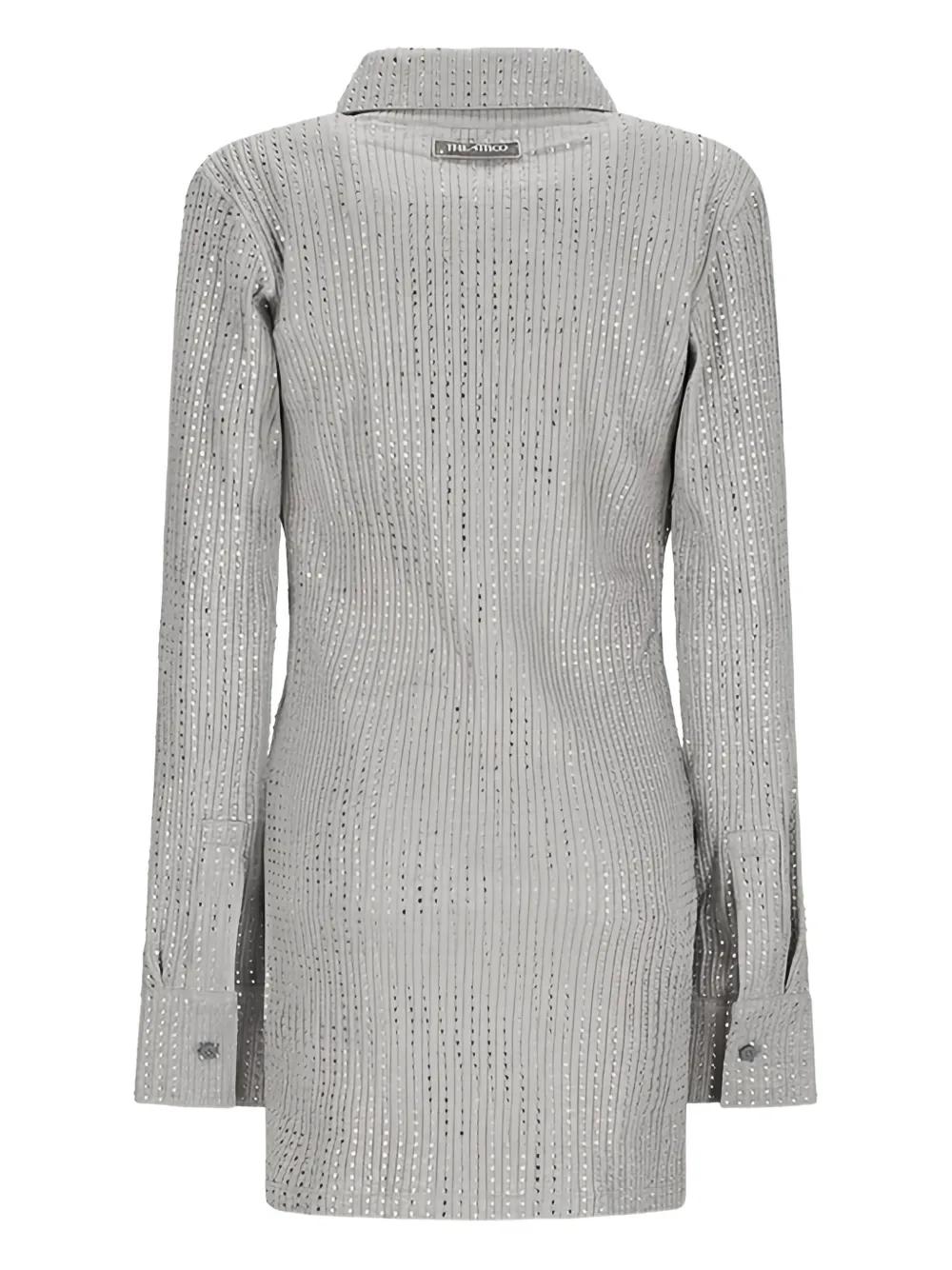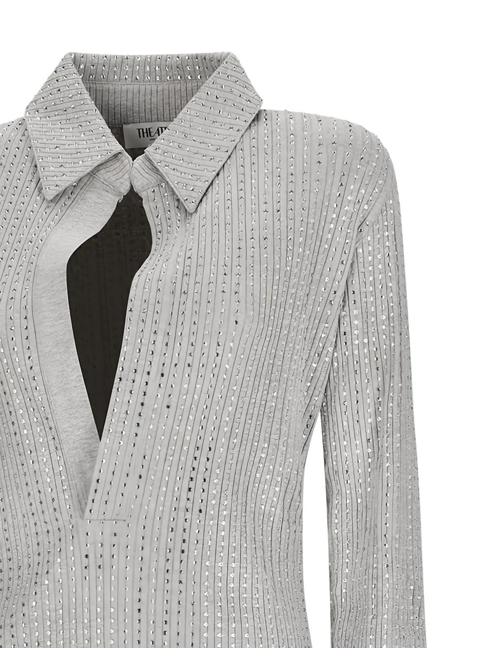 grey crystal embellishment collared neckline long sleeves ribbed texture buttoned cuffs