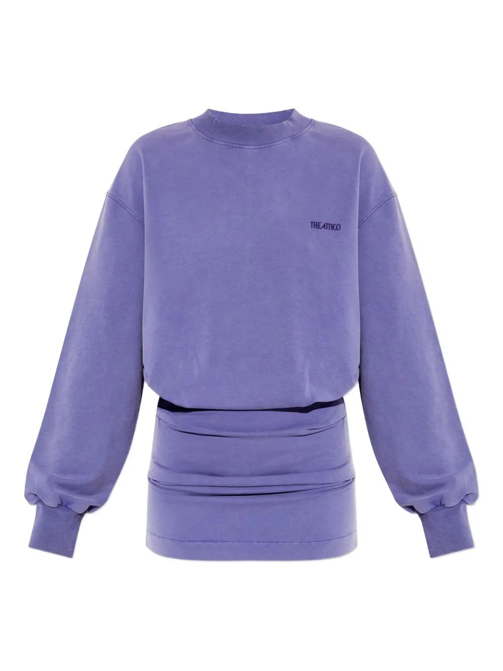 purple logo detail long sleeves round neck gathered detail tonal stitching