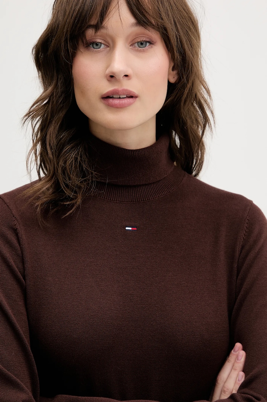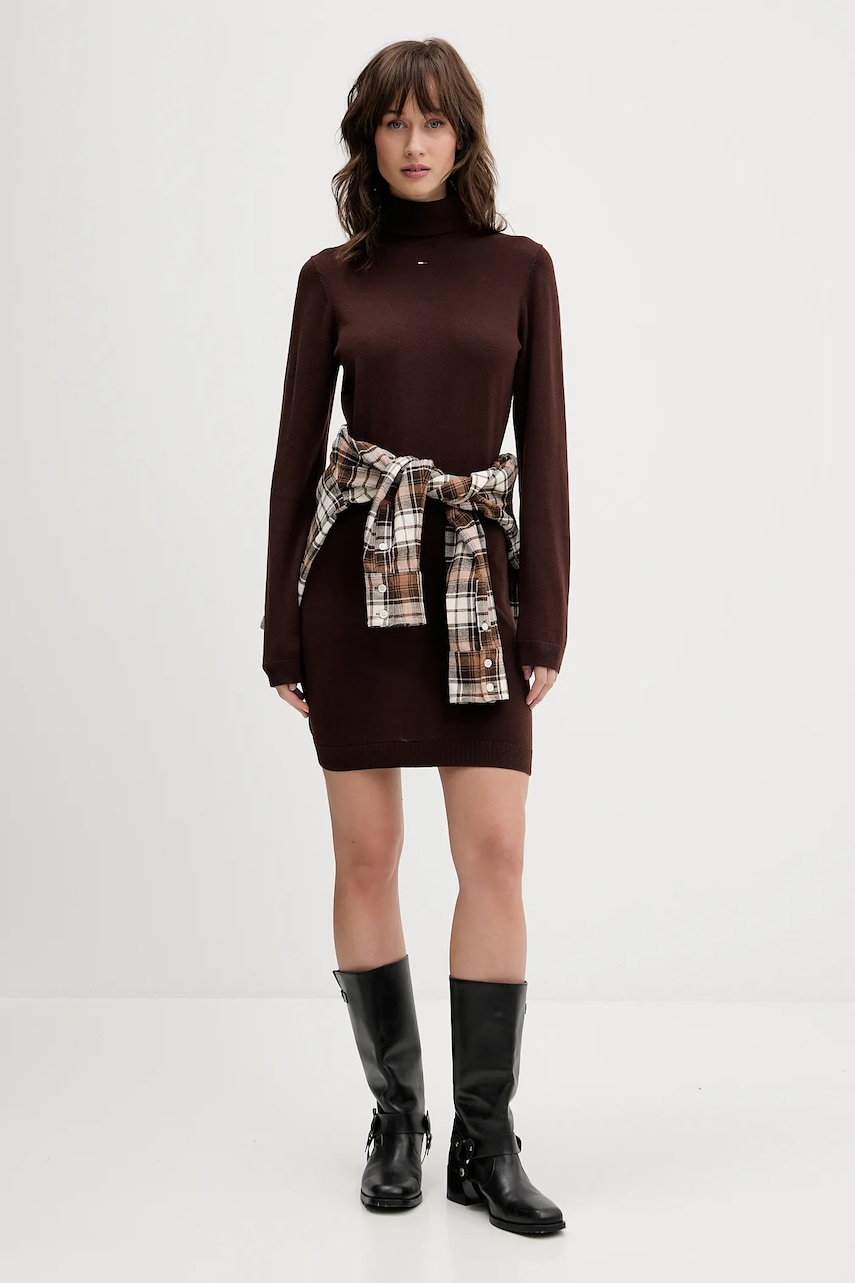 Tommy Jeans sukienka bawełniana kolor brązowy mini dopasowana DW0DW21958