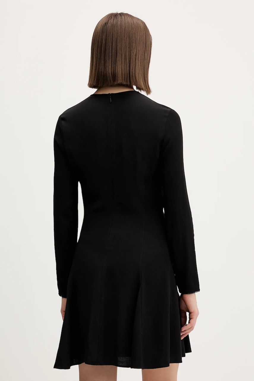 - Model o długości mini. - Rozkloszowany fason. - Długie rękawy. - Okrągły dekolt. - Z tyłu zapięcie na kryty suwak i haftkę. - Długość: 94 cm. - Długość rękawa: 60 cm. - Szerokość pod pachami: 45 cm. - Wymiary podane dla rozmiaru: S.