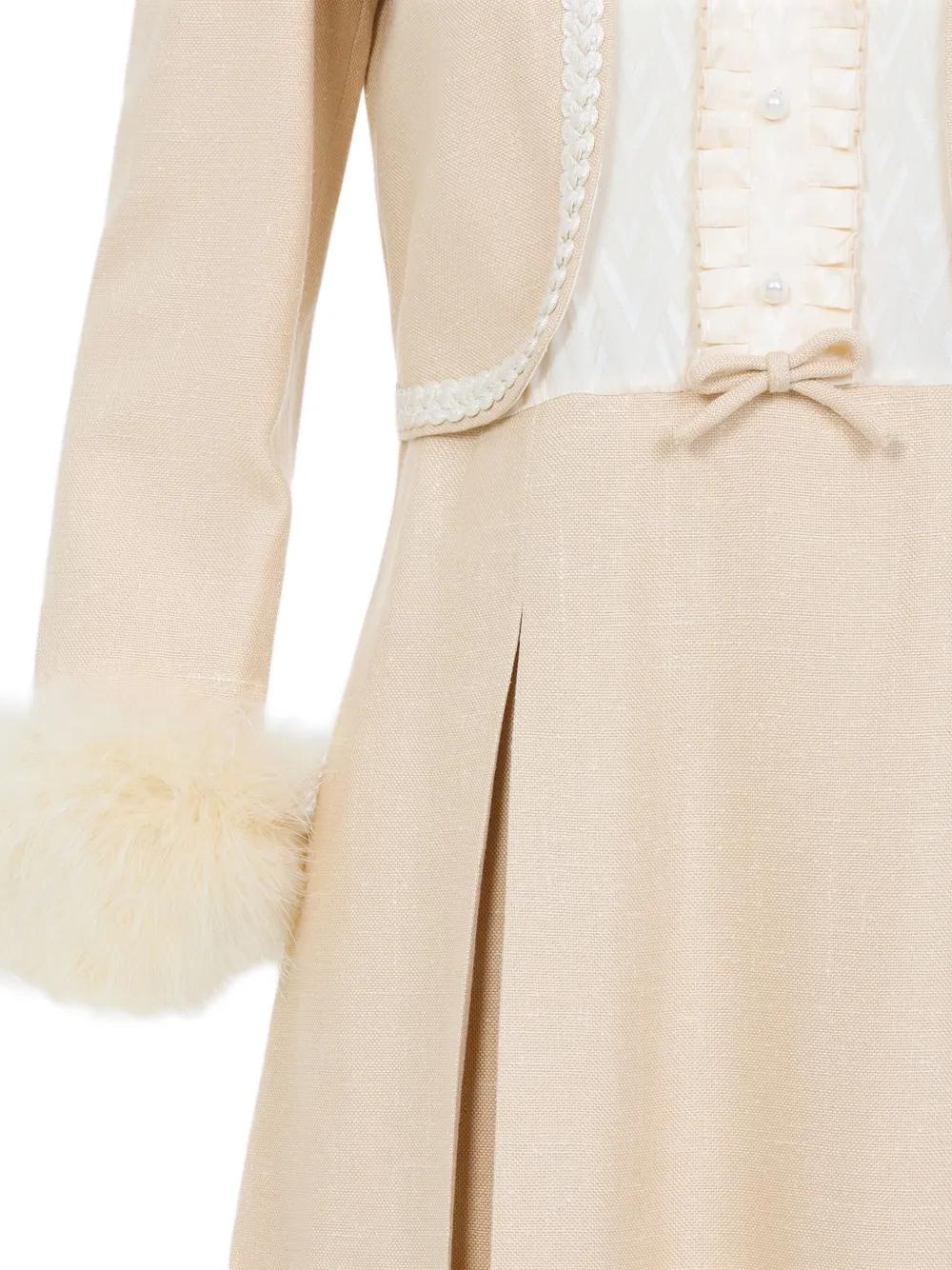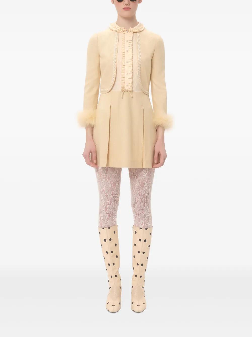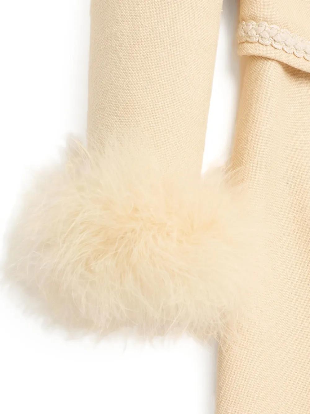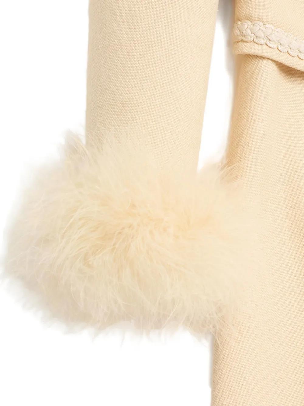 beige short front button fastening feather detailing long sleeves