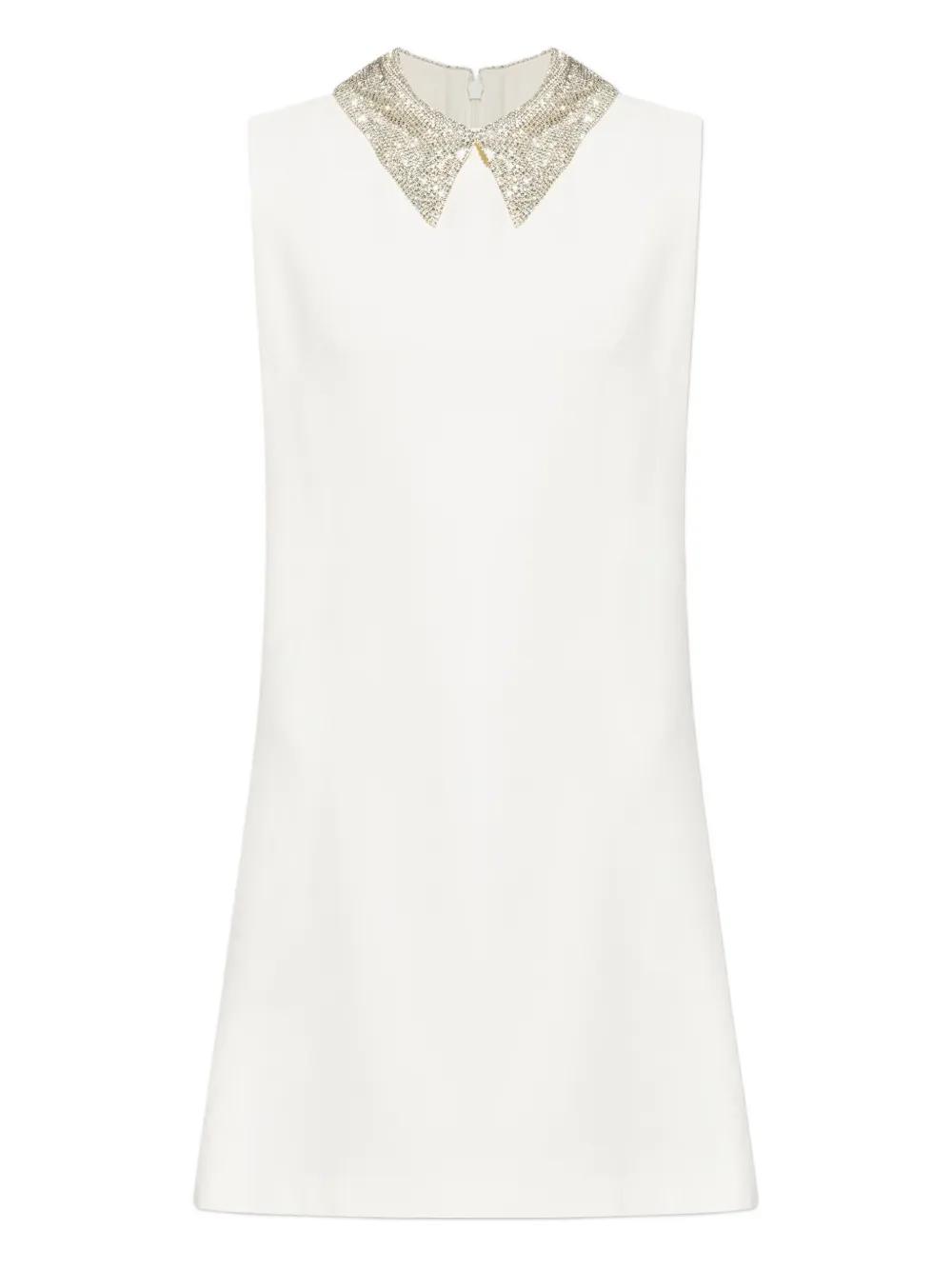 off-white crystal-embellished collar sleeveless design shift dress straight hem natural silk