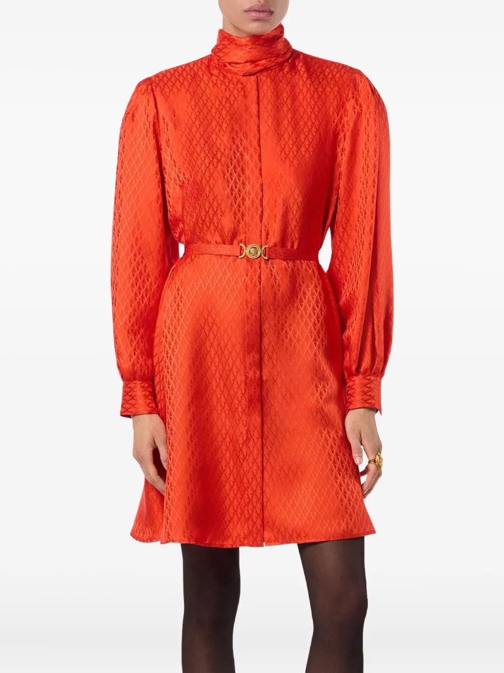 Versace geometric-pattern belted dress - Red