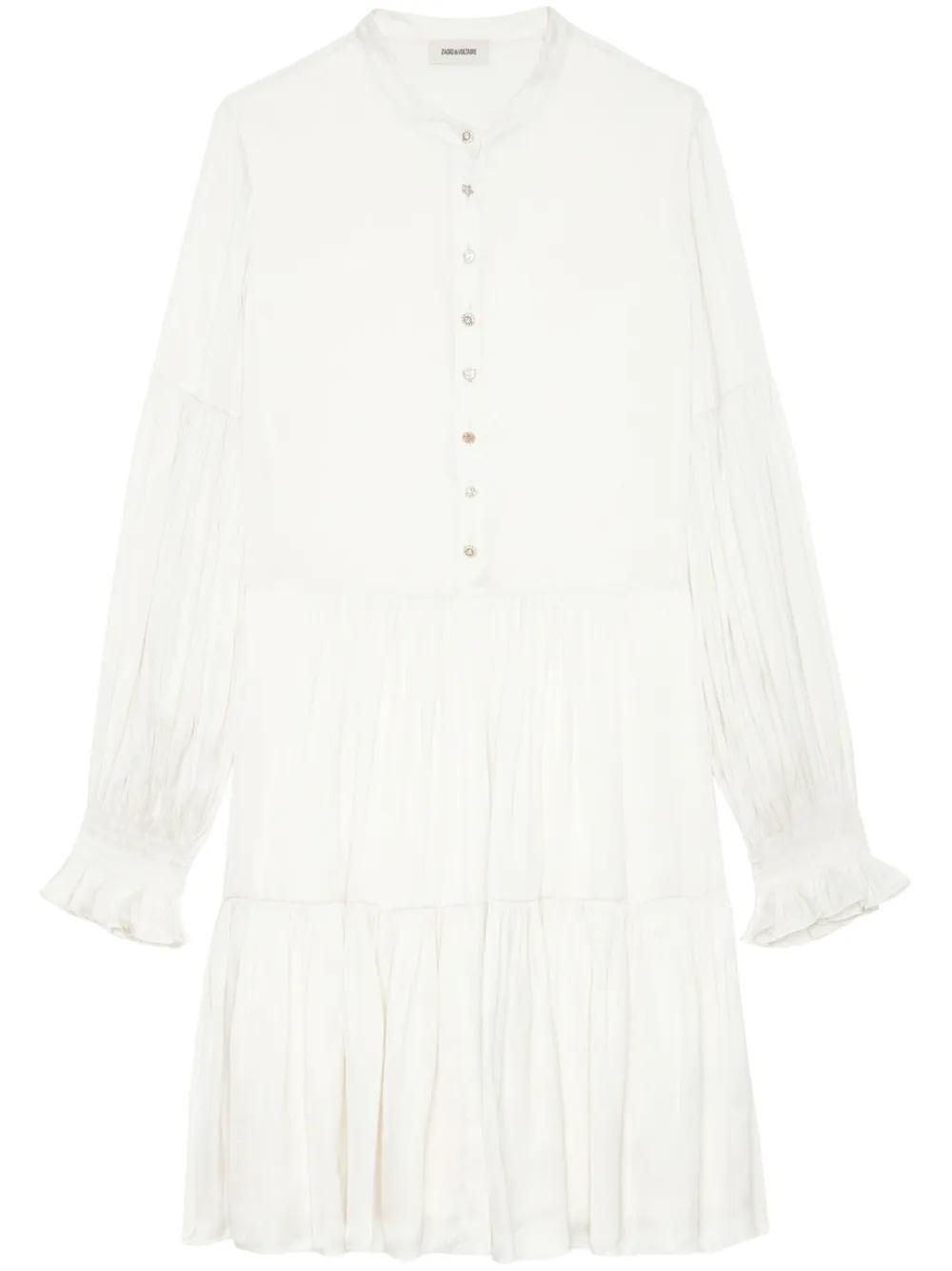 white front button fastening drop shoulder elasticated cuffs ruffle hem