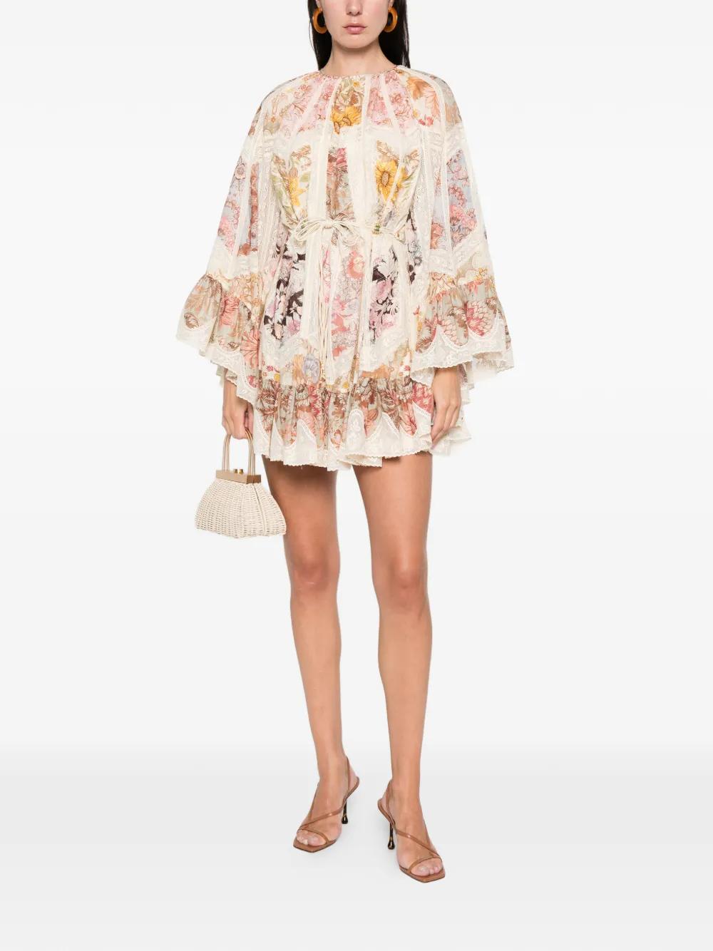 ZIMMERMANN Daylight lace-detail floral-print mini dress - Neutrals