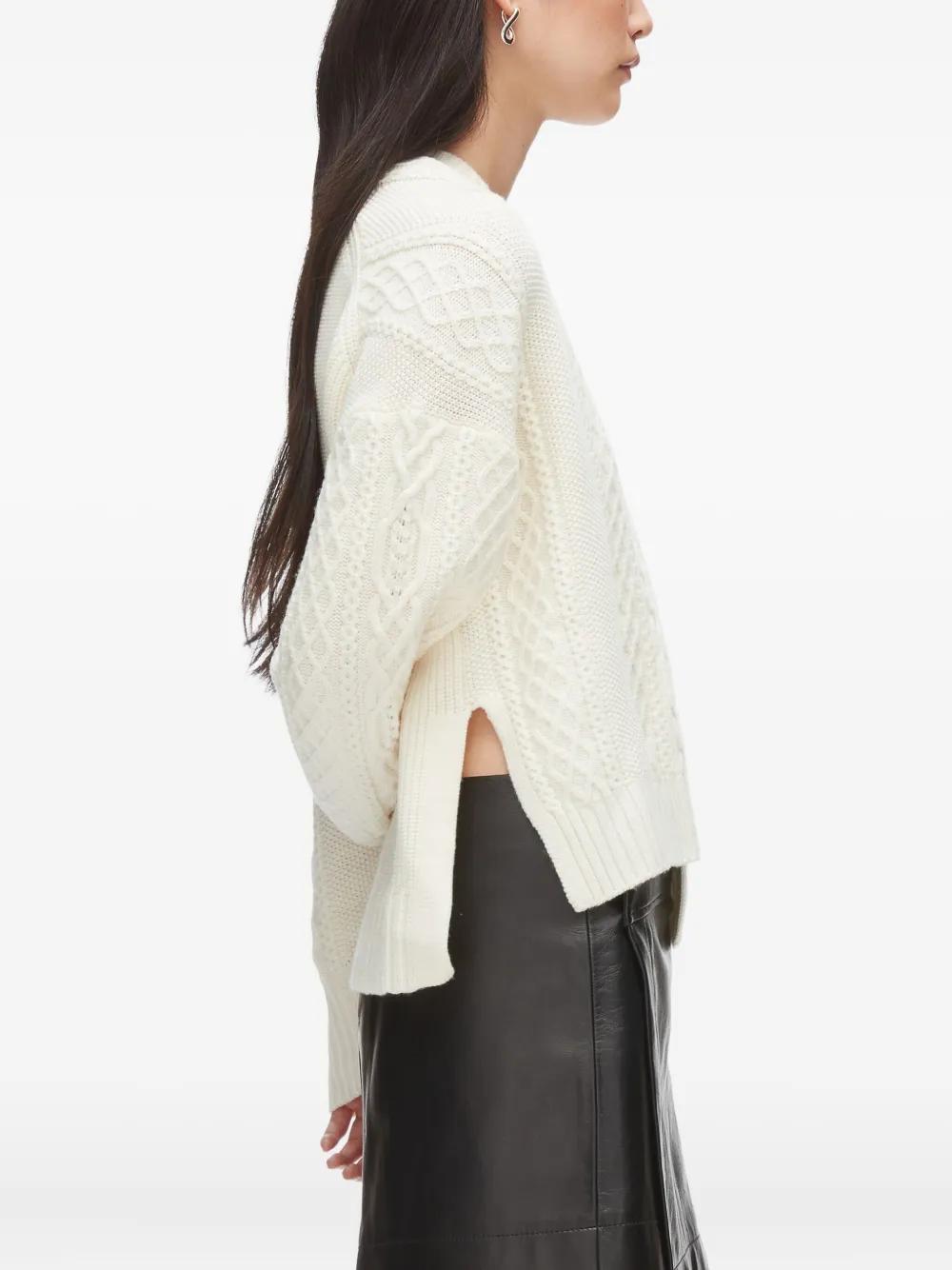 ivory cable knit side slit round neck long sleeves ribbed cuffs