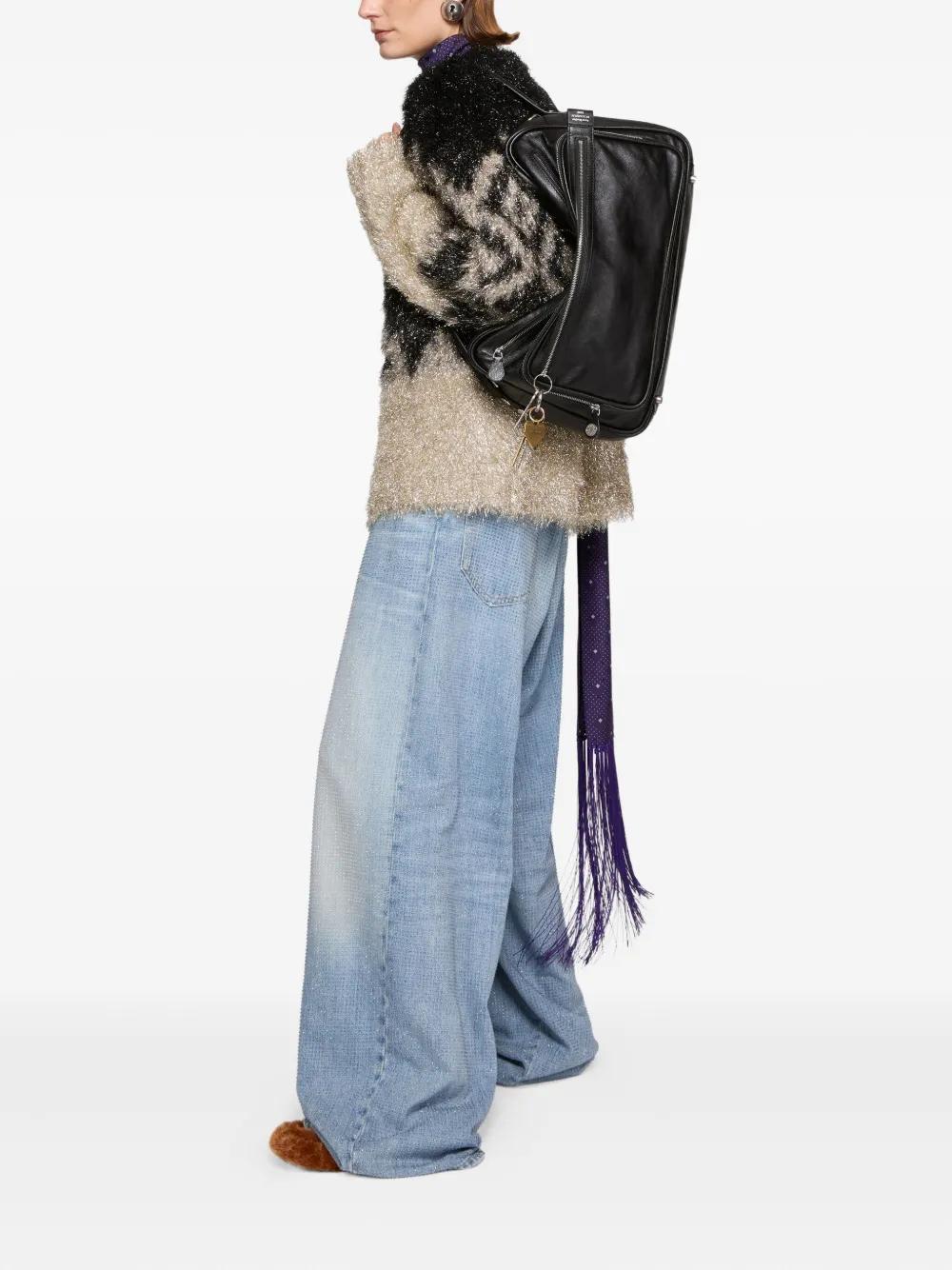 black geometric pattern metallic fibre detailing crew neck long sleeves
