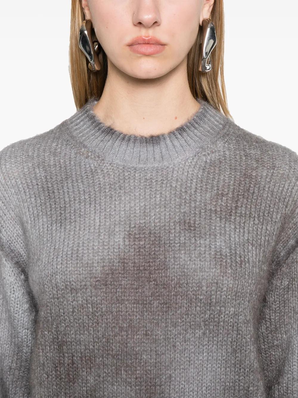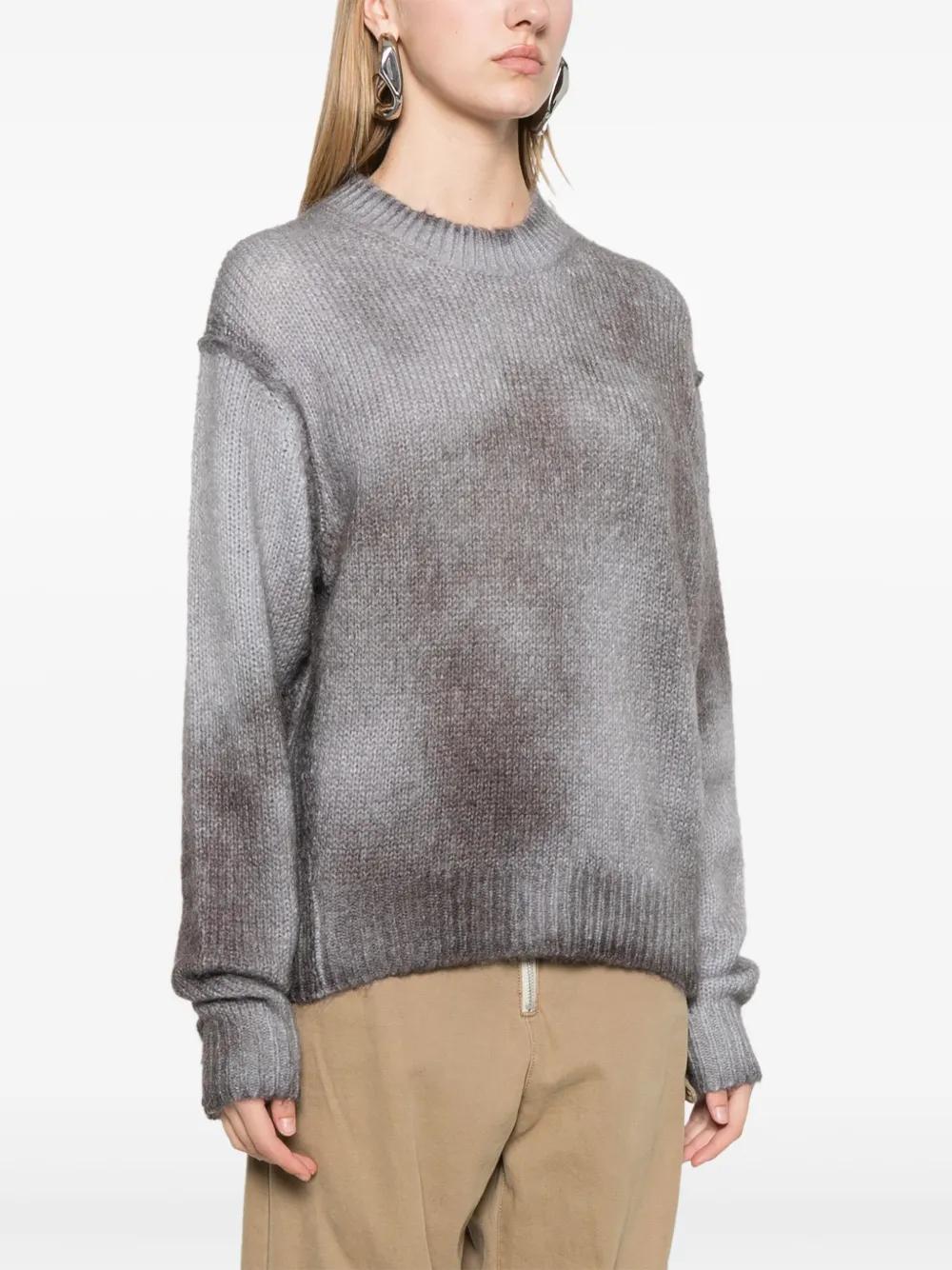 anthracite grey knitted construction distressed finish spray-paint effect crew neck drop shoulder long sleeves ribbed cuffs and hem straight hem