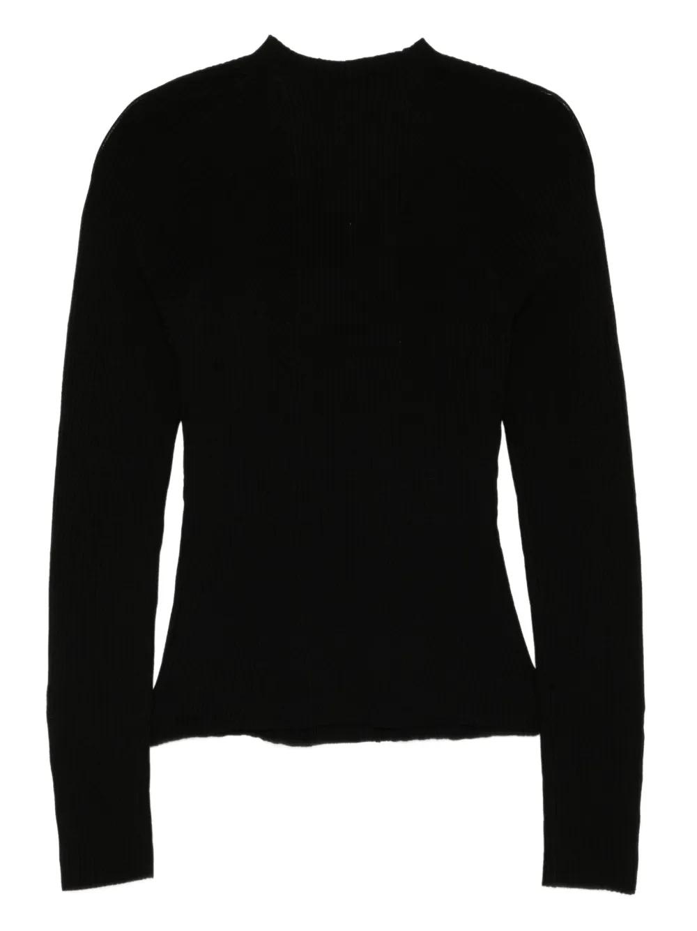 white embroidered logo to the front crew neck long sleeves ribbed trim